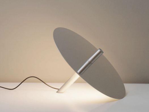 Millimetro, la lampada da tavolo disegnata da Daniel Rybakken per Luceplan, si costruisce attorno a un sottile disco specchiato che riflette e amplifica la luce. Lo stelo, in metallo, sostiene il disco in posizione obliqua e integra i comandi. La sorgente, nascosta sul retro, diffonde un’illuminazione morbida sul piano.