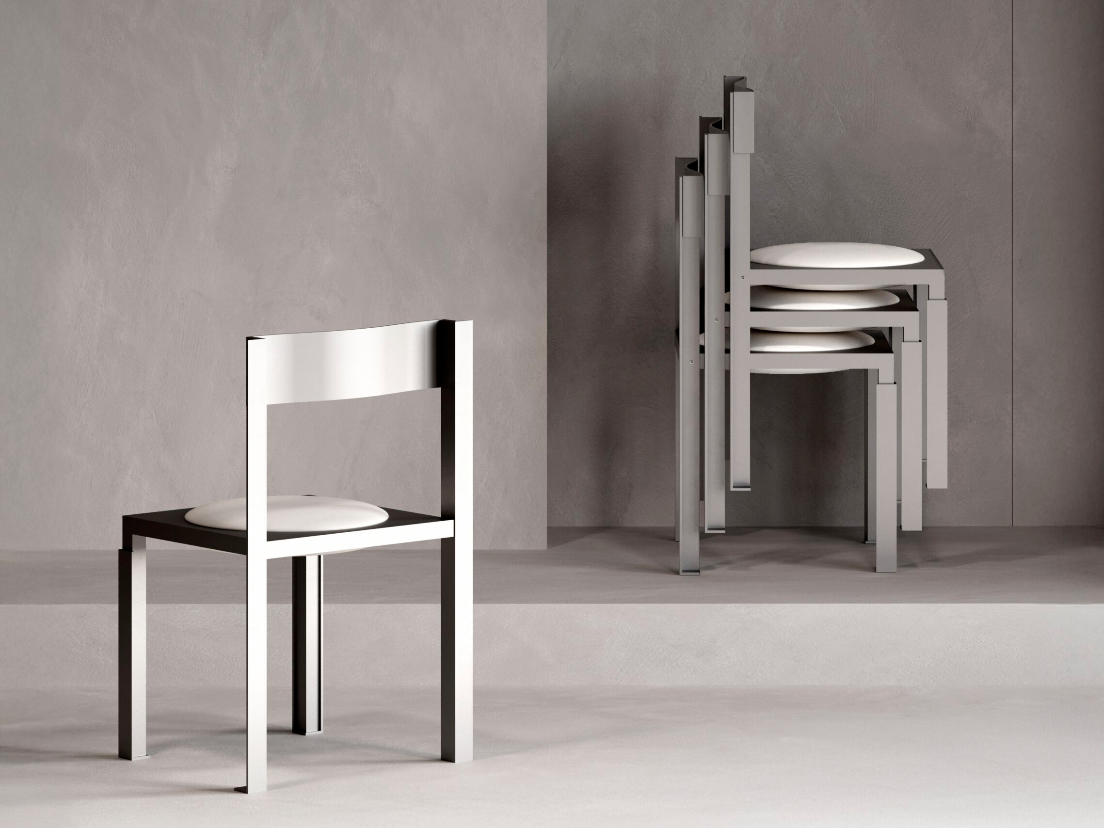 Strut, la sedia in alluminio di YaÄŸmur Köylü per YET. Design Studio, si ispira ai profili angolari delle strutture architettoniche. Le sezioni estruse definiscono la forma e rendono visibile la logica costruttiva. L’alluminio si esprime attraverso pieghe nette e superfici continue.