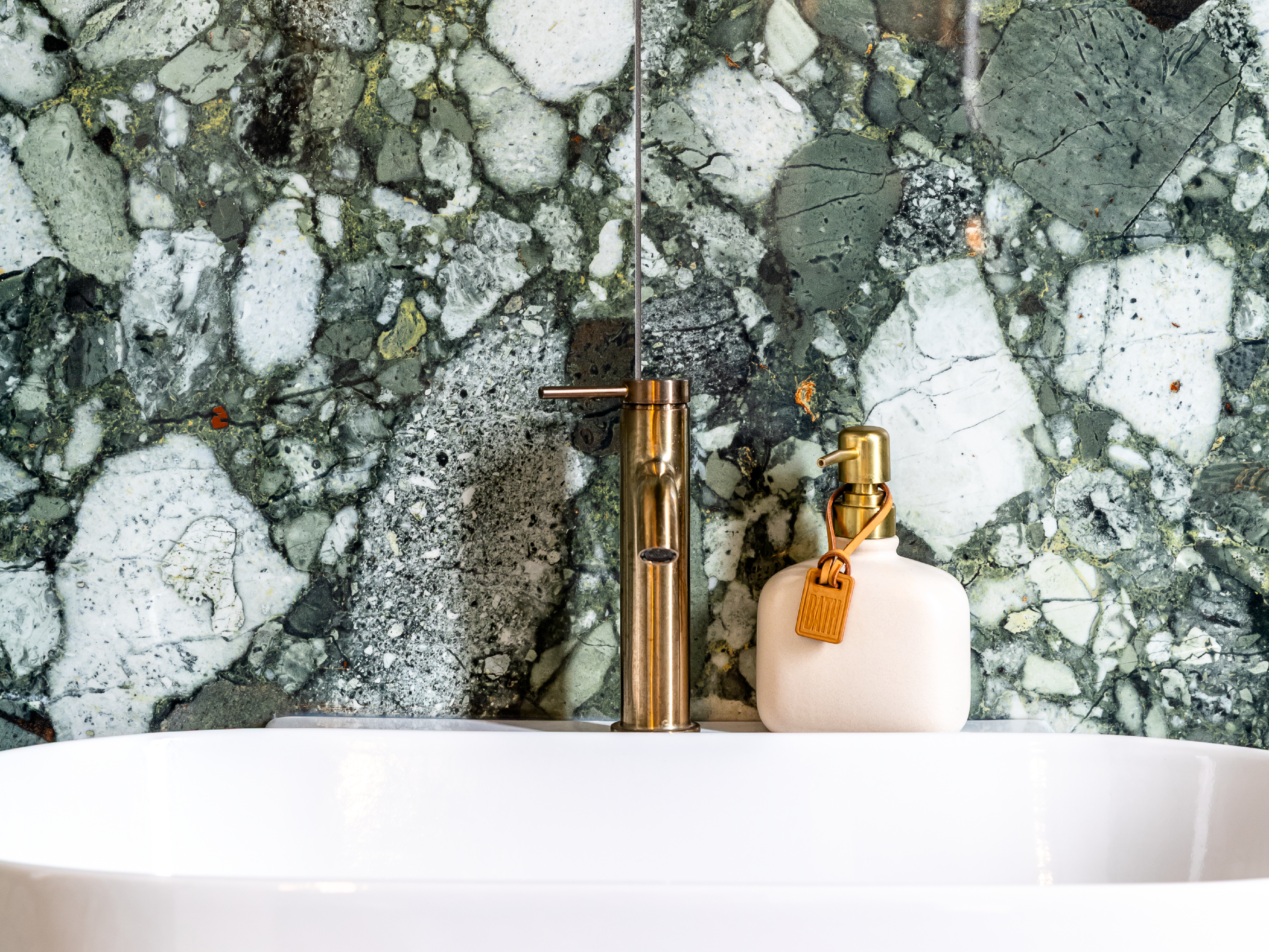 L’effetto pietra, che interpreta la breccia veneziana con un approccio all’arte contemporanea, conferisce profondità visiva e un carattere deciso ma misurato, generando allo stesso tempo un dinamismo materico che anima le superfici e ne amplifica la presenza scenica.
