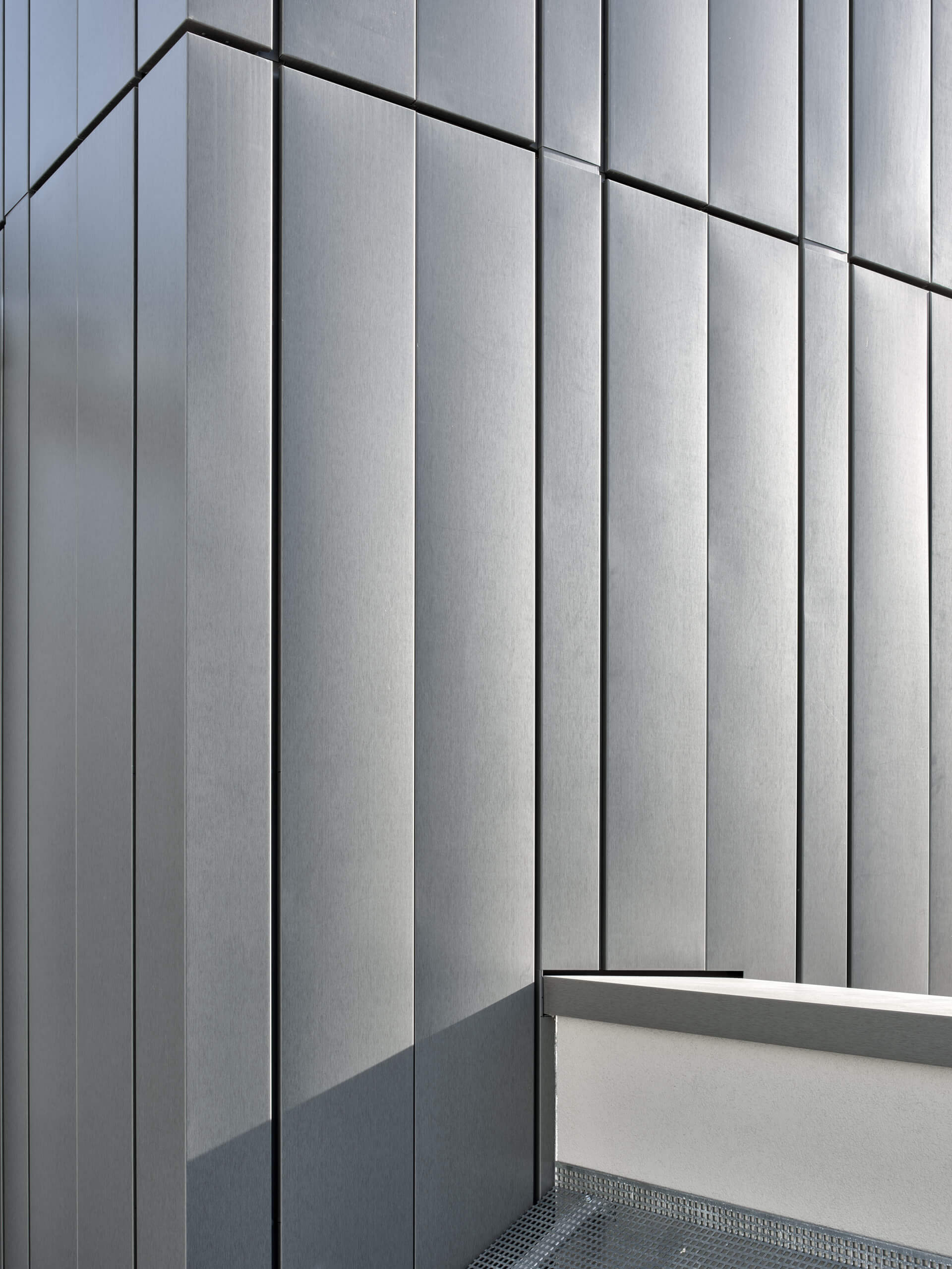 Il tetto in zinco-titanio garantisce durata e contribuisce a migliorare l'efficienza energetica dell'edificio
