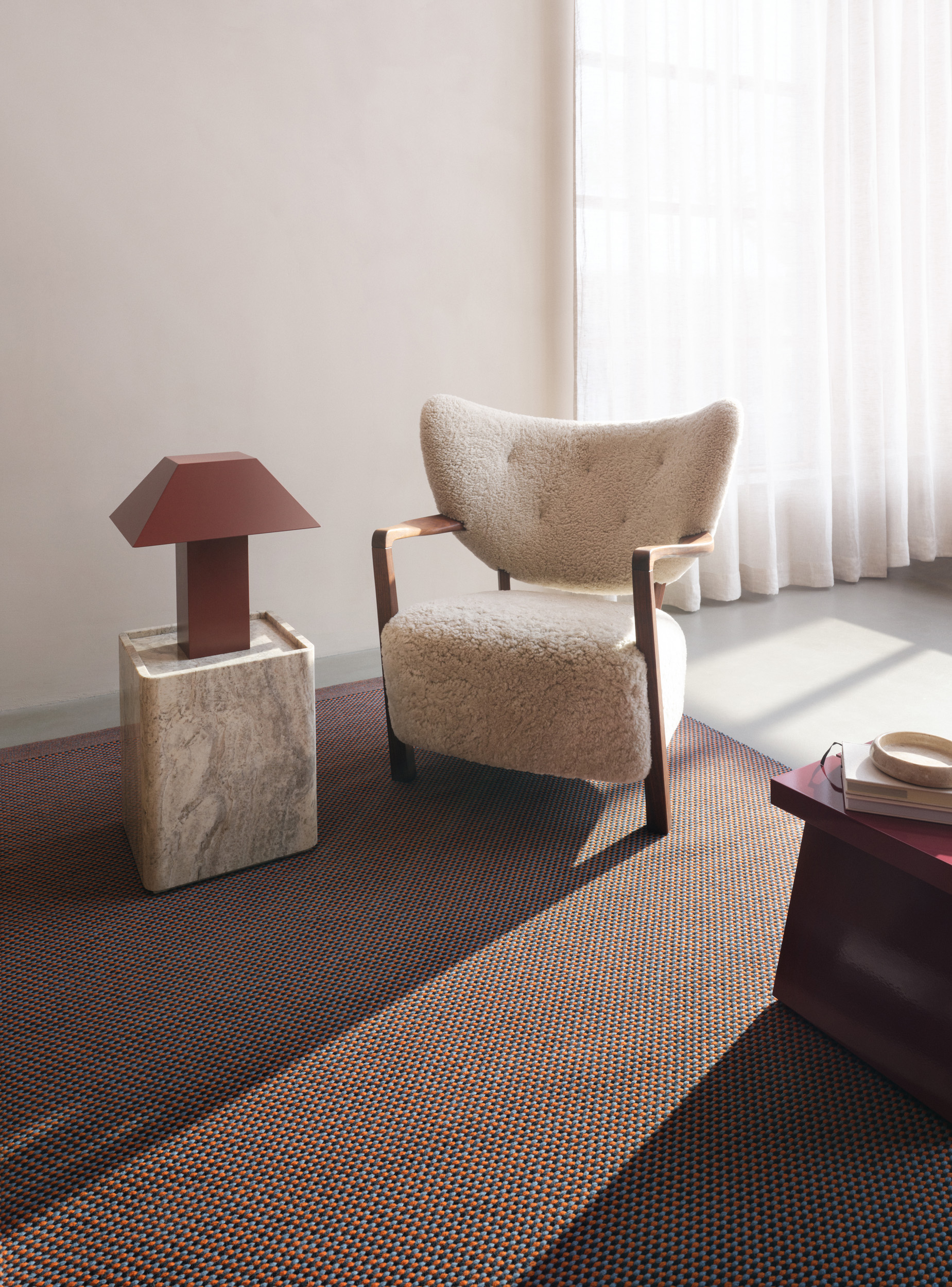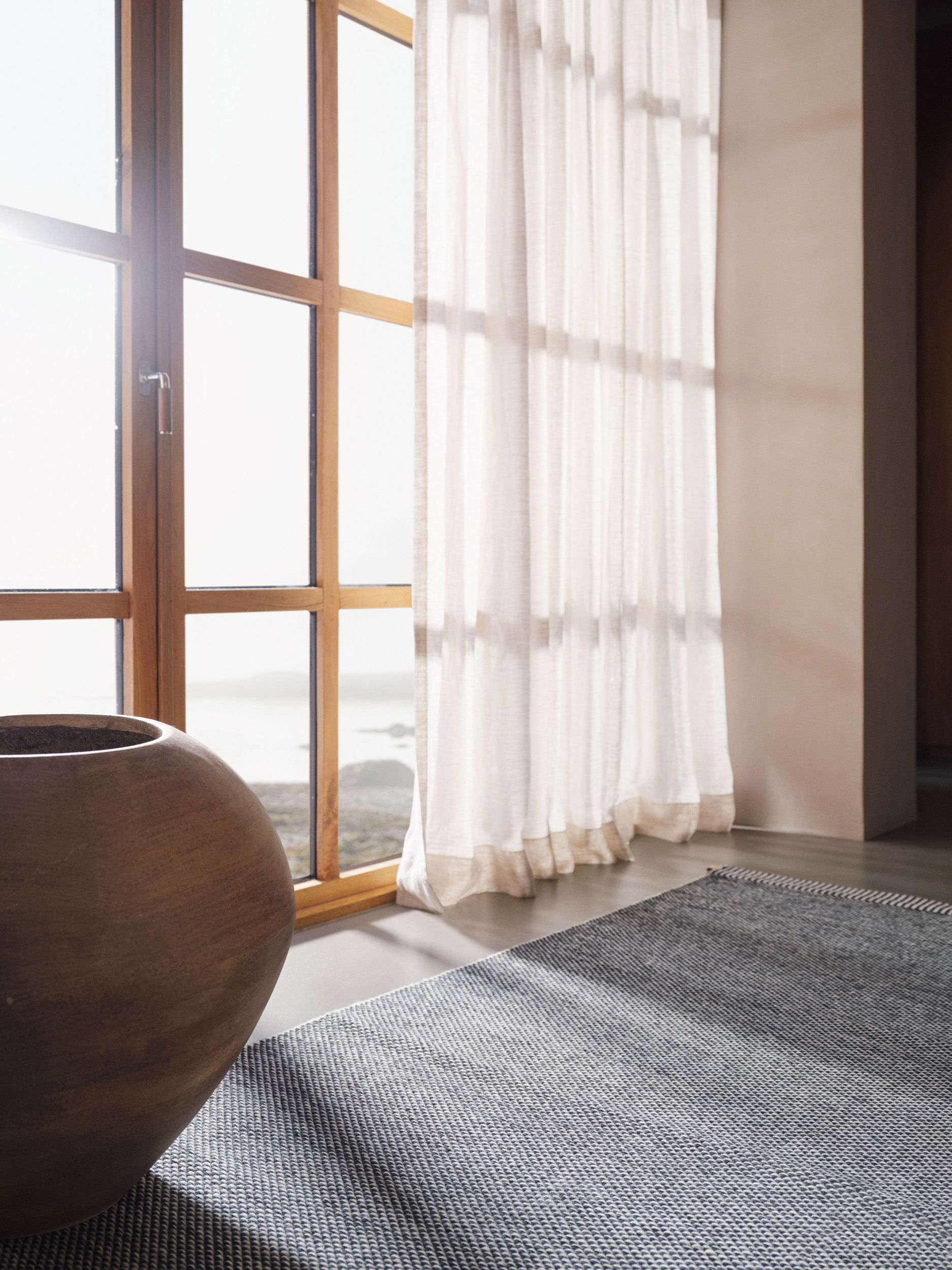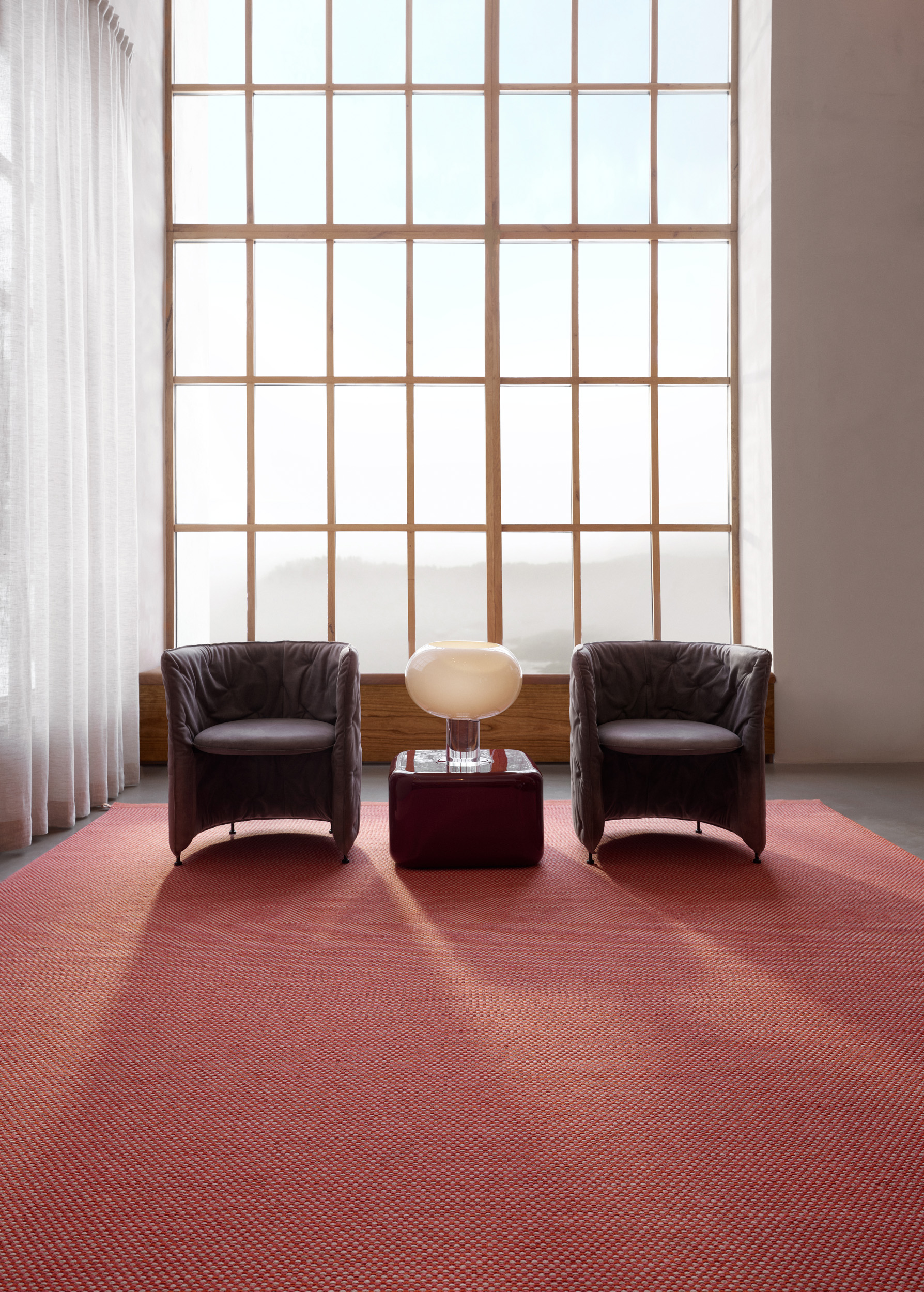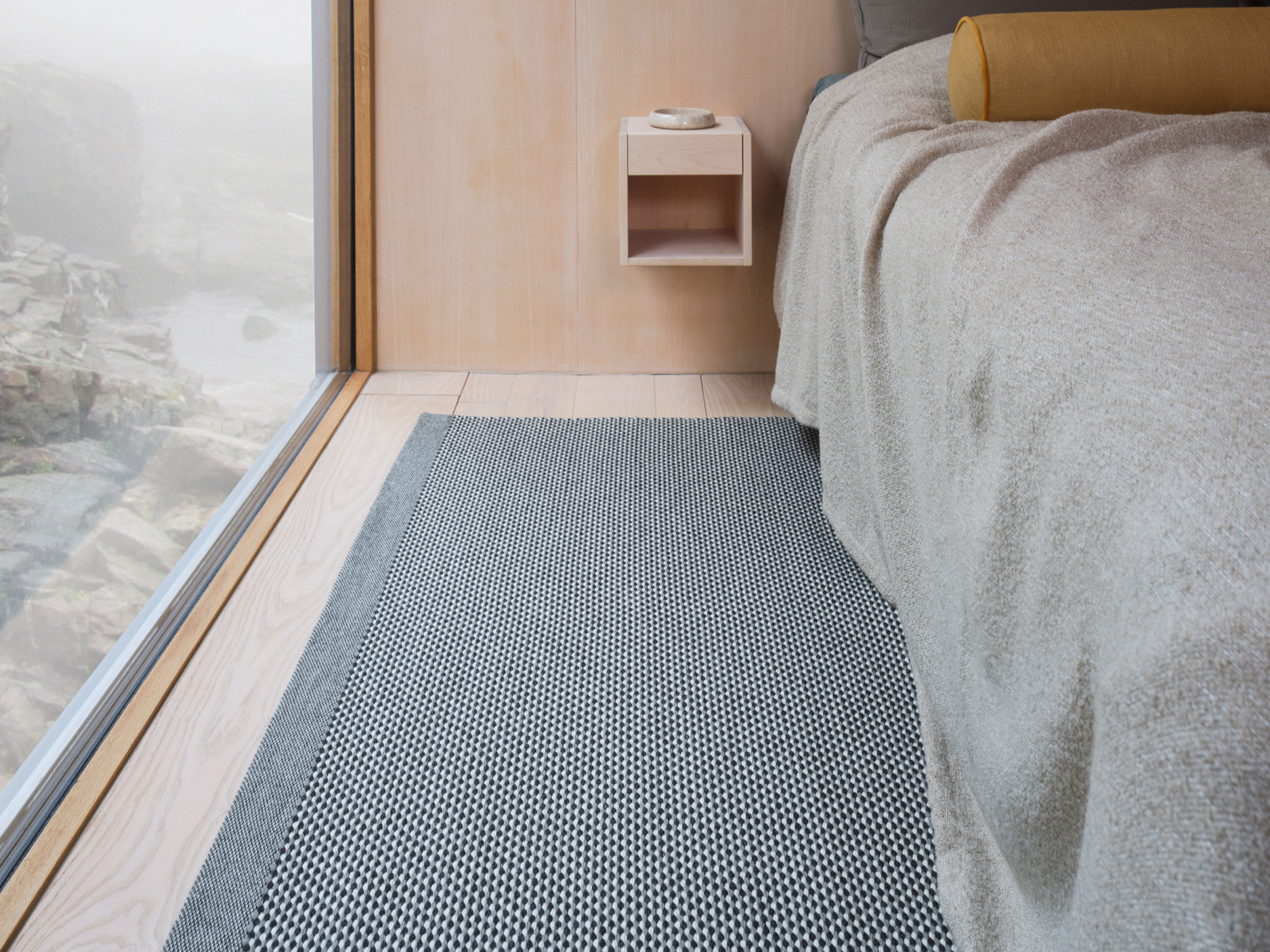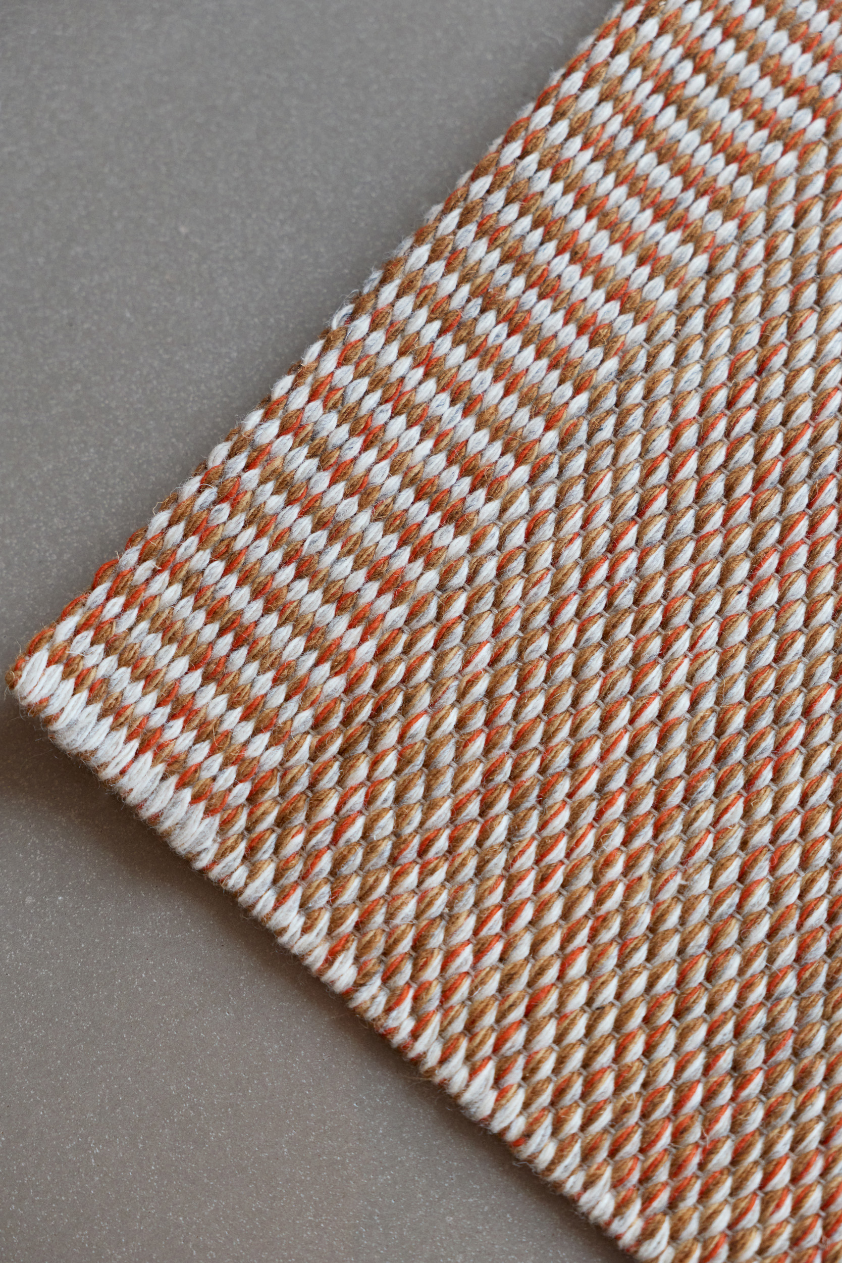Atlas prende il suo nome dalle montagne del Nord Africa, reinterpretate attraverso texture ricche e tonalità cangianti. La lavorazione a doppia trama conferisce al tappeto una matericità intensa. “L’ordito diventa parte integrante della texture finale – e questa cosa è piuttosto rara”, spiega Barber. “Dona alla superficie un leggero scintillio, un senso di vitalità.” Atlas celebra il movimento e una topografia discreta.