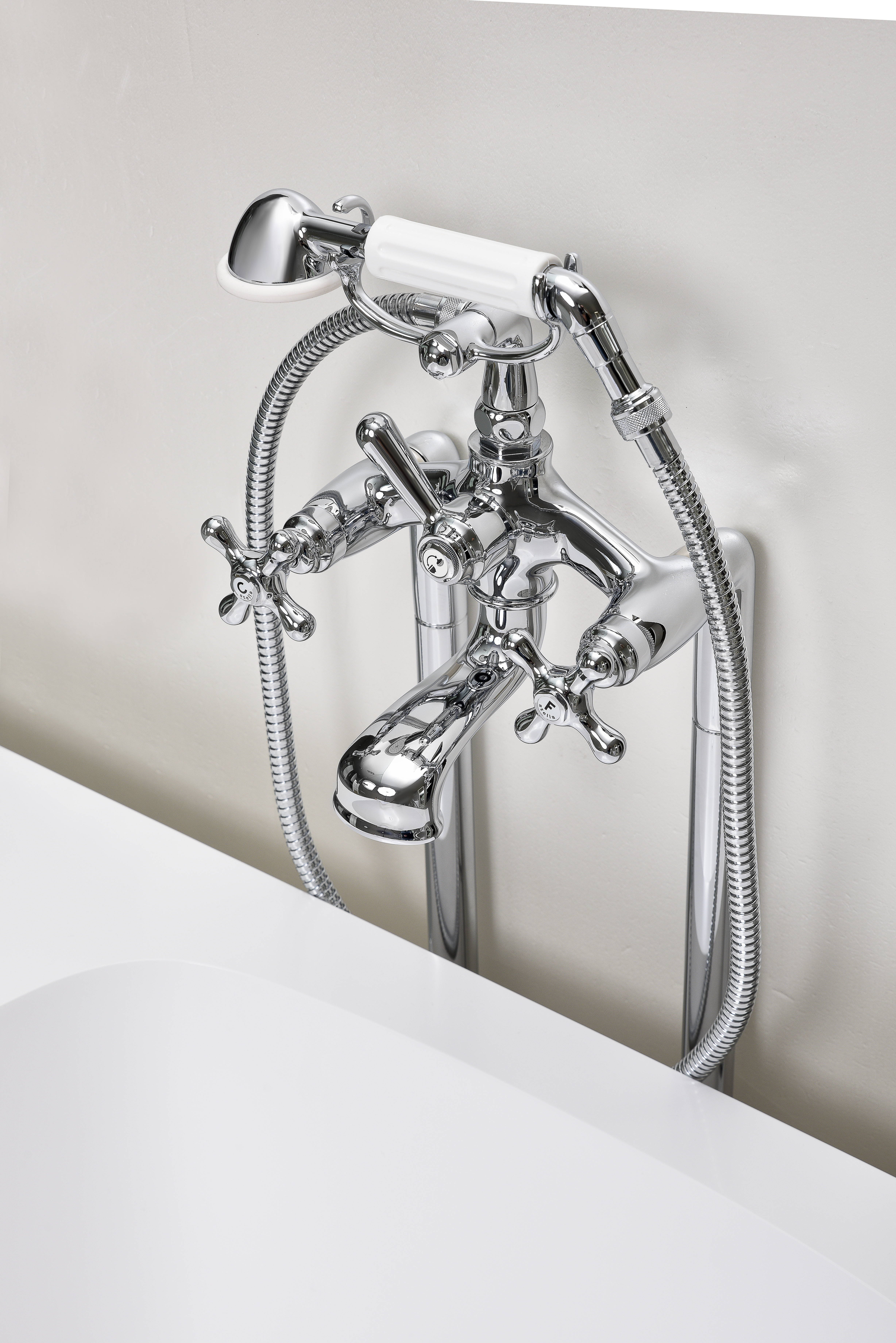 A Palazzo Ottaviani, prestigiosa architettura storica, Roma è presente nella versione di gruppo lavabo tre fori, tra i prodotti più apprezzati sia nel residenziale sia nell’hotellerie, dove continua a distinguersi per affidabilità, estetica e ampia disponibilità di ricambi originali, consentendo interventi di manutenzione e aggiornamento anche a distanza di anni. Il bagno del Palazzo ospita anche una configurazione speciale del gruppo termostatico esterno per doccia, in cui è stato utilizzato un soffione tondo slim adattato.