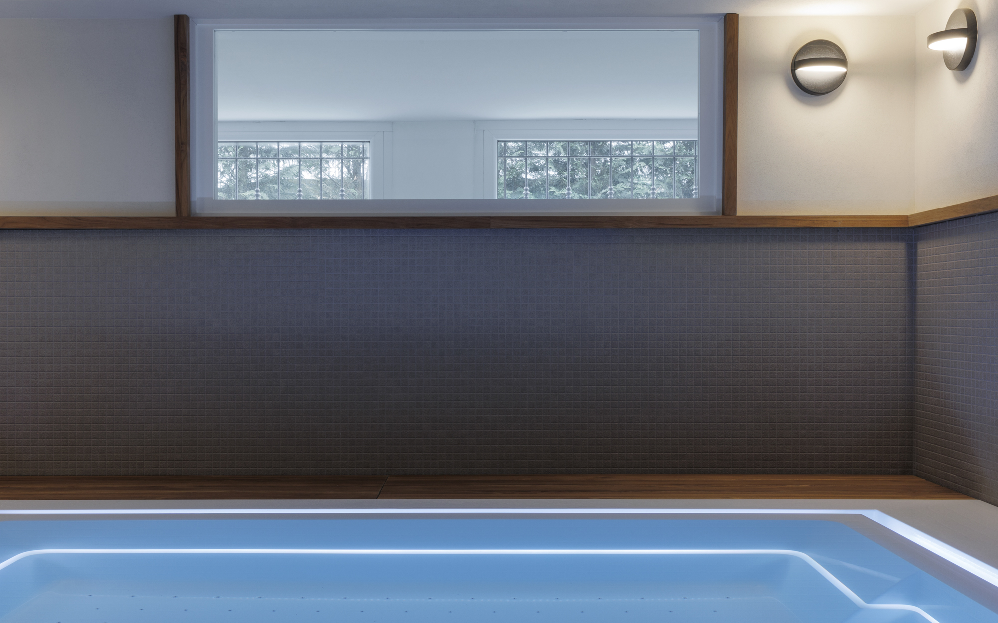 La minipiscina, inserita all’interno di una nicchia e racchiusa in una struttura rivestita in teak, dialoga con naturalmente l’architettura esistente, confermando la versatilità progettuale delle soluzioni Treesse.