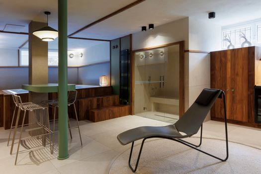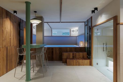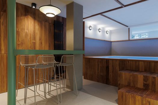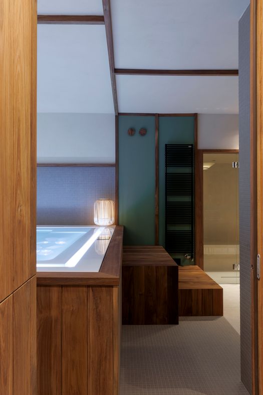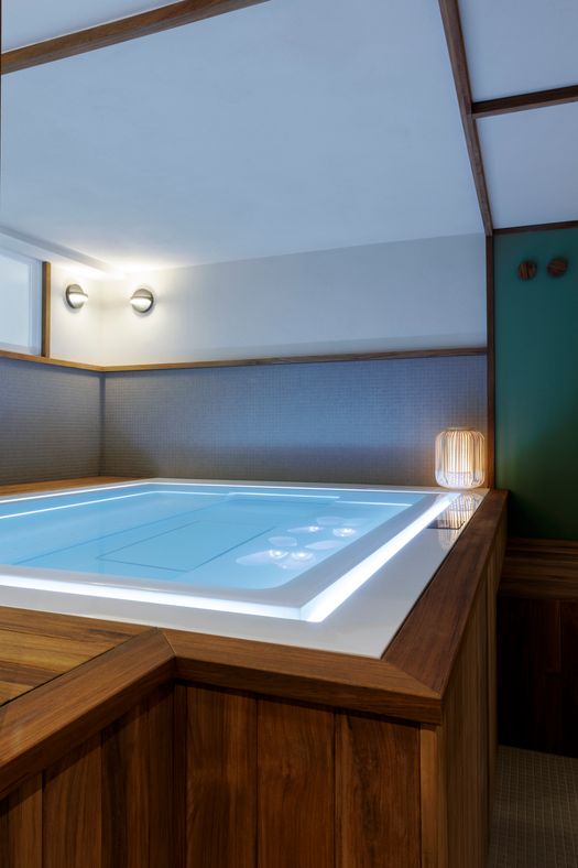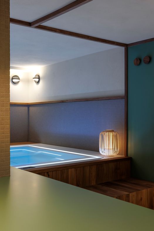 La minipiscina Zen Active è il fulcro attorno al quale si articola l'intervento di interior design firmato da Essenza Studio: uno spazio dedicato al benessere in una villa a Torino