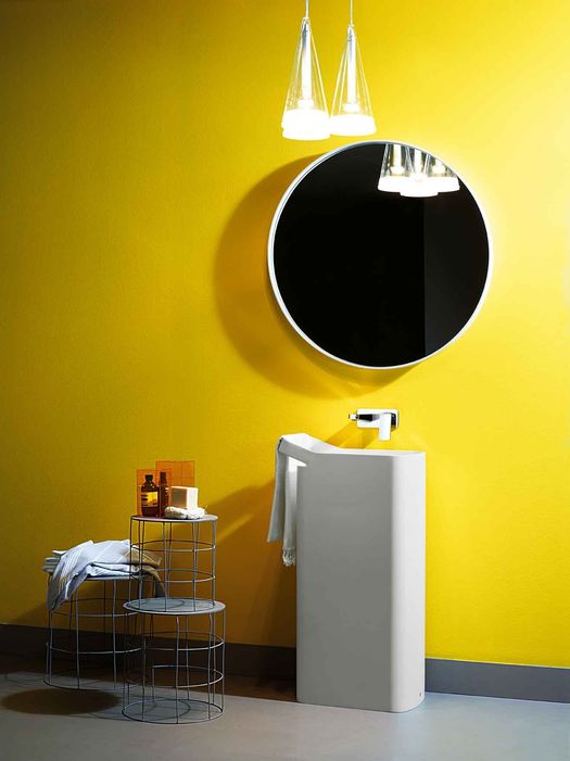 Con Kartell by Laufen ridisegnano l'intero ecosistema dello spazio bagno, lavabi, sanitari, rubinetterie, vasche e accessori, fondendo il vocabolario plastico di Kartell con l'innovazione materica di Laufen.