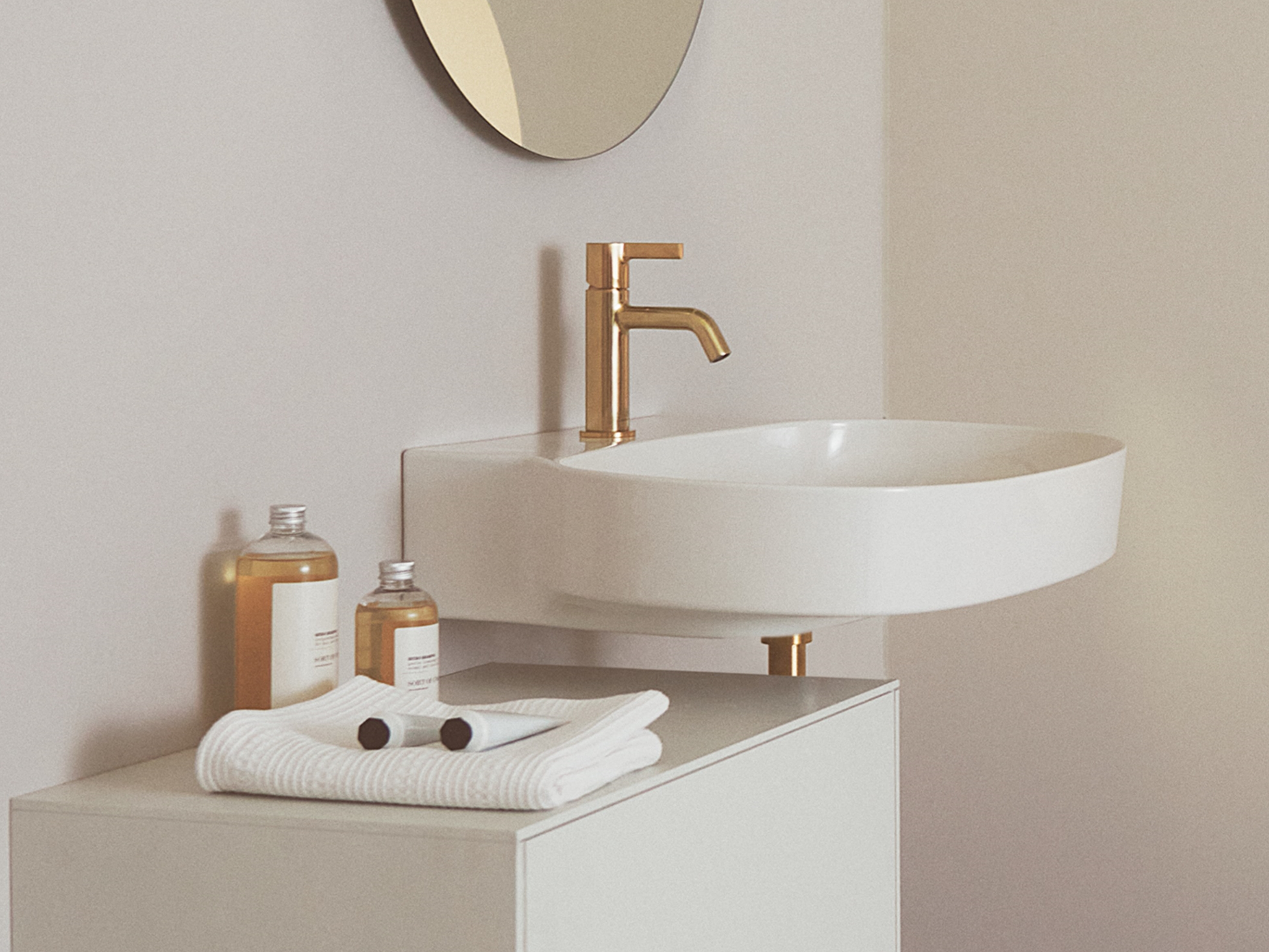 Nel bagno la ricerca si fa più radicale. Lab 03 per Zucchetti inventa una tipologia che non esisteva, il lavabo freestanding che per la prima volta integra il porta asciugamani nella struttura, trasformando un oggetto funzionale in un progetto di architectural design.