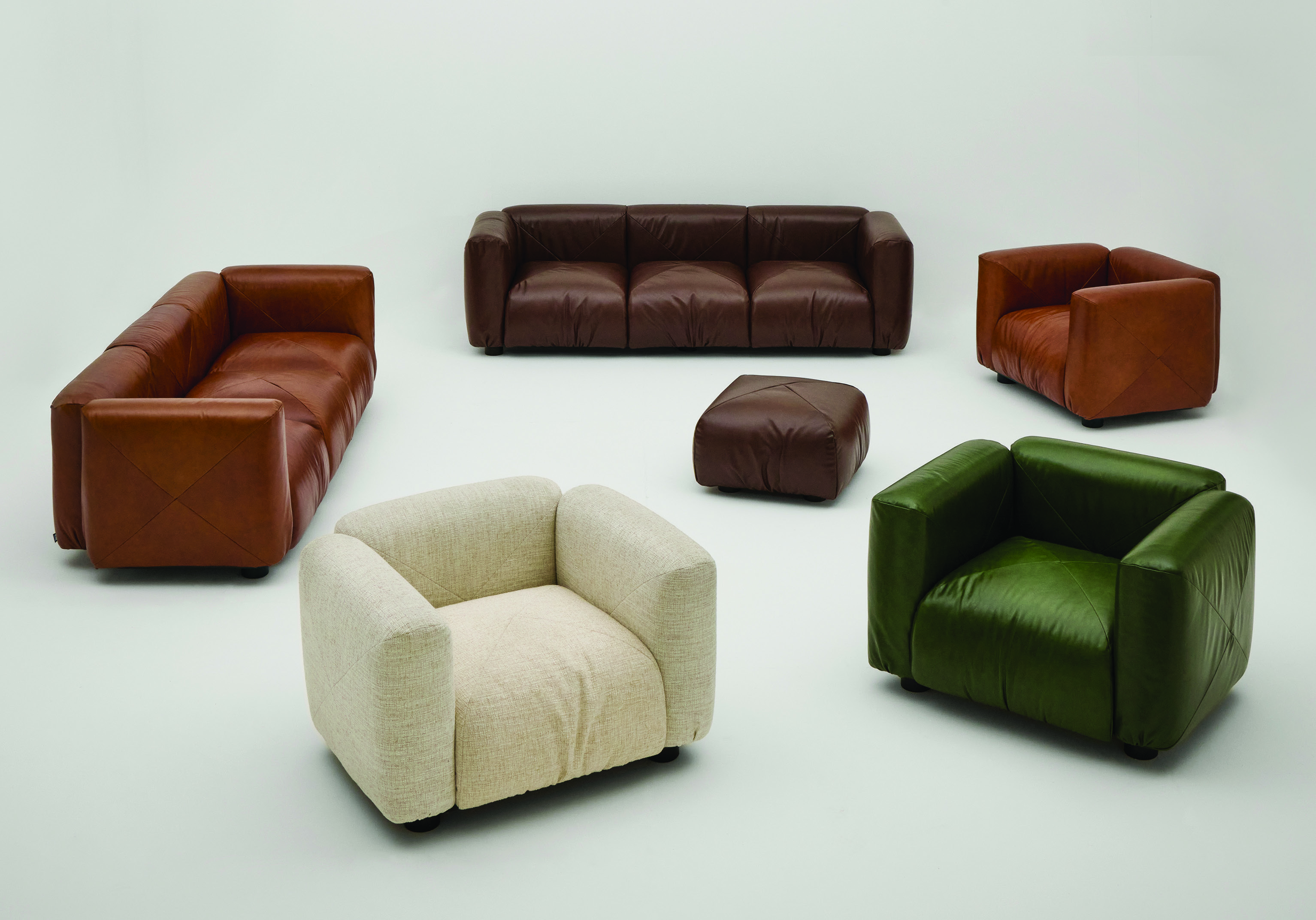 Arflex continua il percorso di riscoperta del lavoro di Mario Marenco, rieditando il divano Marius&Marius disegnato negli anni '70, simbolo di un’epoca in cui il design italiano sapeva coniugare comfort, ironia e originalità. Accogliente e immediatamente riconoscibile, Marius&Marius si distingue per il suo profilo generoso contenuto negli schienali e braccioli che lo avvolgono. L’imbottitura morbida viene valorizzata dalle cuciture a vista, dando fedeltà allo spirito originale.