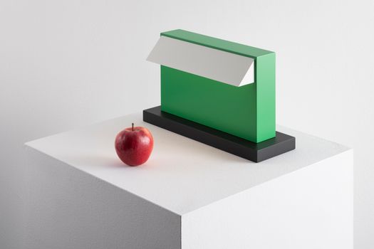 Disegnata nel 1982 da Ettore Sottsass, la lampada da tavolo Hera segue il modello della lampada ministeriale attraverso volumi puri, essenziali, blocchi di colore decisi che si sovrappongono. È così elementare nelle geometrie da acquisire uno spessore simbolico, diventare un oggetto che focalizza l’attenzione. Il volume del corpo racchiude tutte le componeneti, la testa a sezione triangolare nasconde le sorgenti e le scherma per impedirne la visione diretta. Una lente controlla l’emissione aprendola sul piano d lavoro.