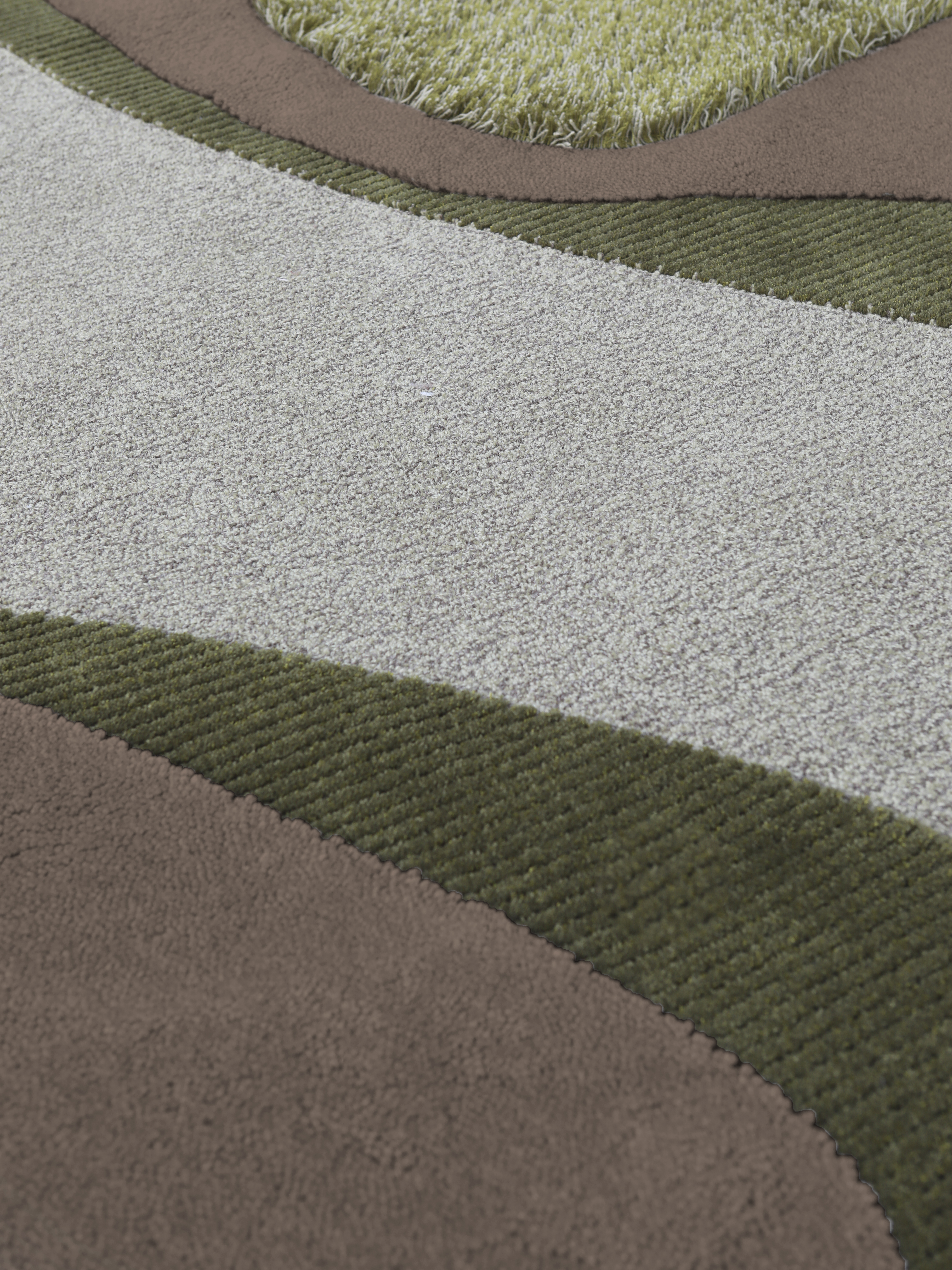 I tappeti taftati a mano della collezione Barene reinterpretano l’interazione primordiale tra terra e acqua, uno “scambio” in cui forme fluide e irregolari richiamano la superficie mutevole tracciata dalle maree, mentre i colori raccontano il susseguirsi delle stagioni in questo luogo unico. “Siamo partiti dalla cartografia e dalle foto aeree delle barene, rispettando i colori e le proporzioni dei livelli, il disegno è così divenuto un pattern digitale di livelli capaci di possibili combinazioni”, continua il designer.