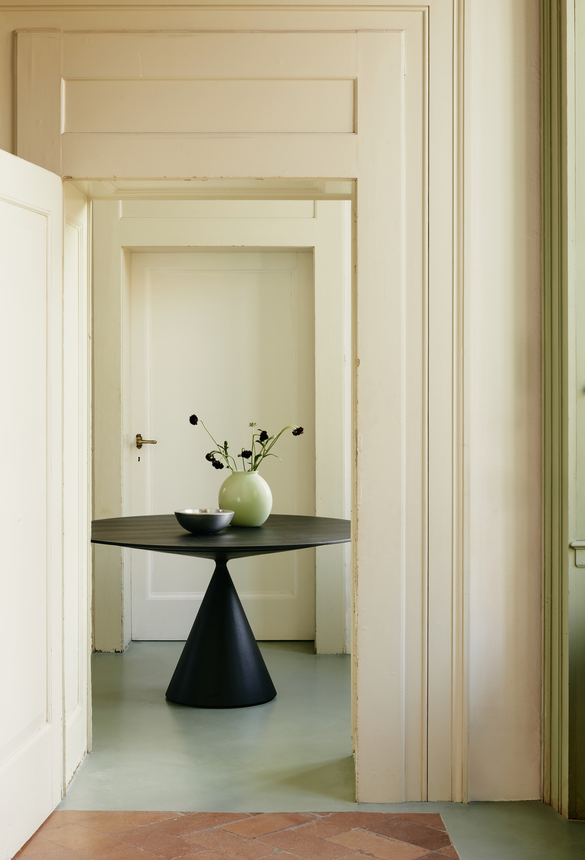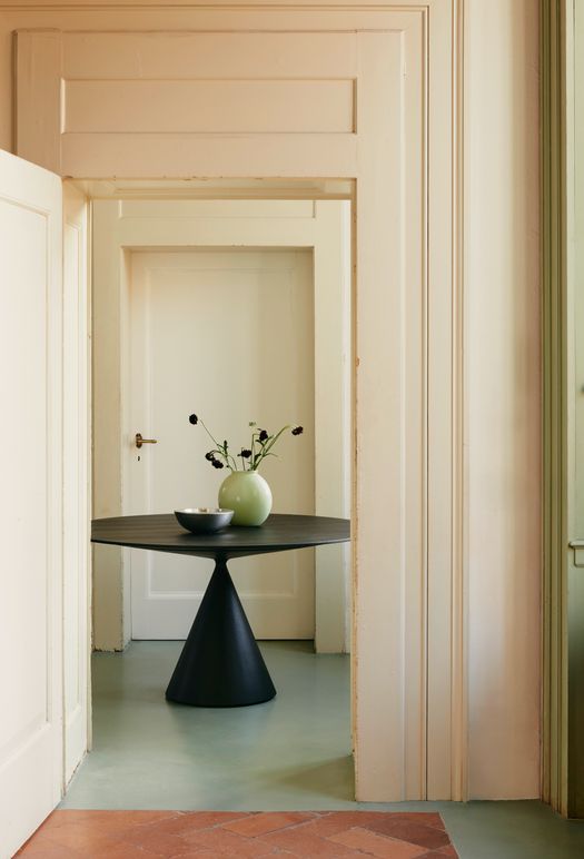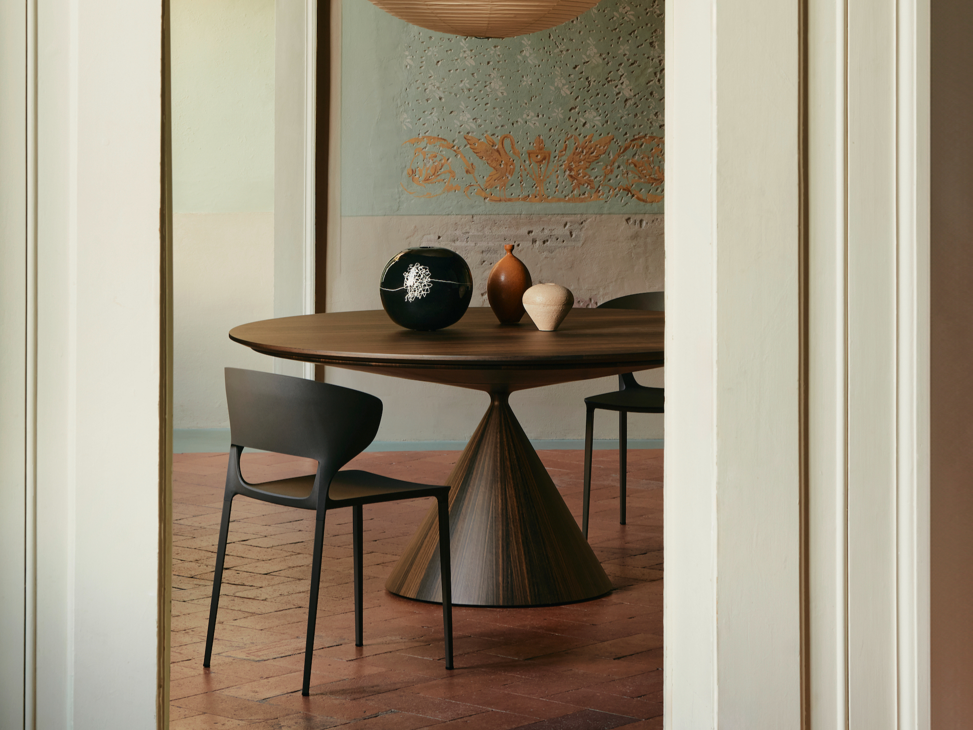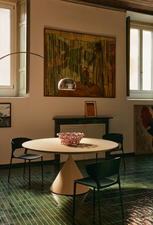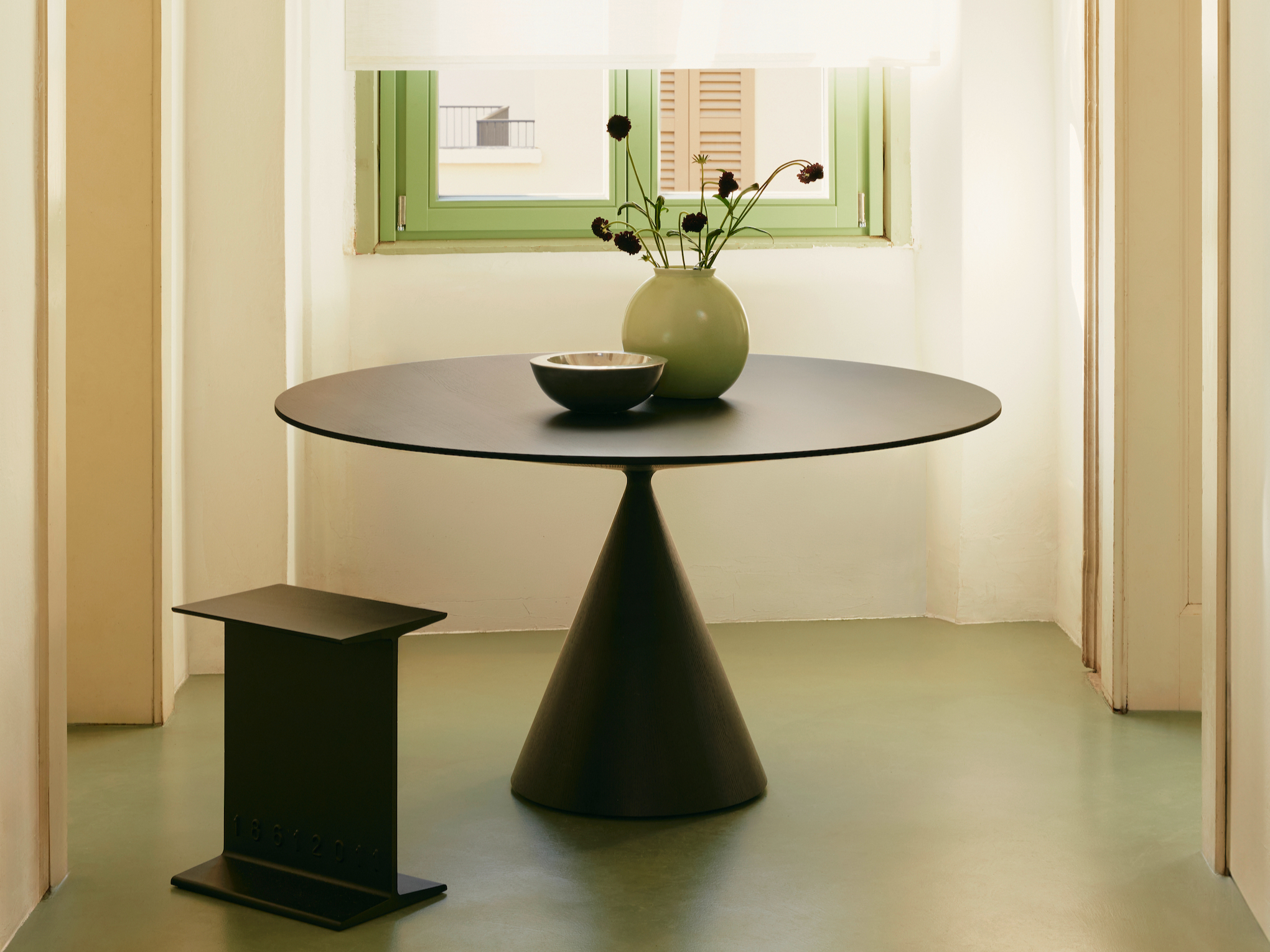 Il design di Clay si distingue per la silhouette essenziale e potente. Un piano sottile sembra sospeso sopra una base monolitica a tronco di cono rovesciato: prendono forma due volumi essenziali che si equilibrano in un appoggio ardito e leggero, trasformando la stabilità in un gesto di pura eleganza.