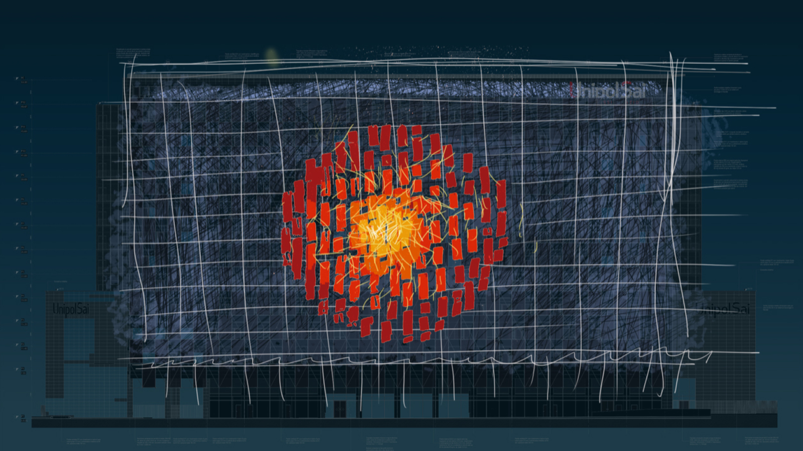 Light Our Fire - part of INTERNI MATERIAE di INTERNI (Via Gaetano de Castillia 23). Studio Azzurro trasforma la facciata di Urban Up | Unipol – De Castillia 23 in un organismo luminoso in continua trasformazione. Dopo acqua e aria, la terra emerge come elemento centrale, fungendo da ponte verso il fuoco inteso come forza creativa. Ispirata al mito di Prometeo, l’installazione riflette sull’energia come potere e responsabilità. Invitato a interpretare il tema MATERIAE, Studio Azzurro costruisce un percorso visivo che invita a una riflessione collettiva sull’energia, sul futuro e sulla cura del nostro Pianeta.