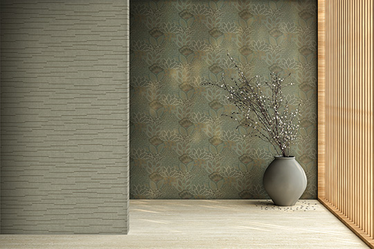Ispirata al mondo del ricamo, della tessitura e dell’estetica giapponese, AltaGamma Zen è una collezione dal carattere materico e sofisticato che unisce artigianalità e design contemporaneo. Con un linguaggio materico e tattile, la collezione interpreta motivi decorativi e trame tessili in chiave minimal ed elegante. Pattern geometrici e frammenti decorativi si combinano con lavorazioni goffrate e tridimensionali, affiancate a gessati, righe e chevron.