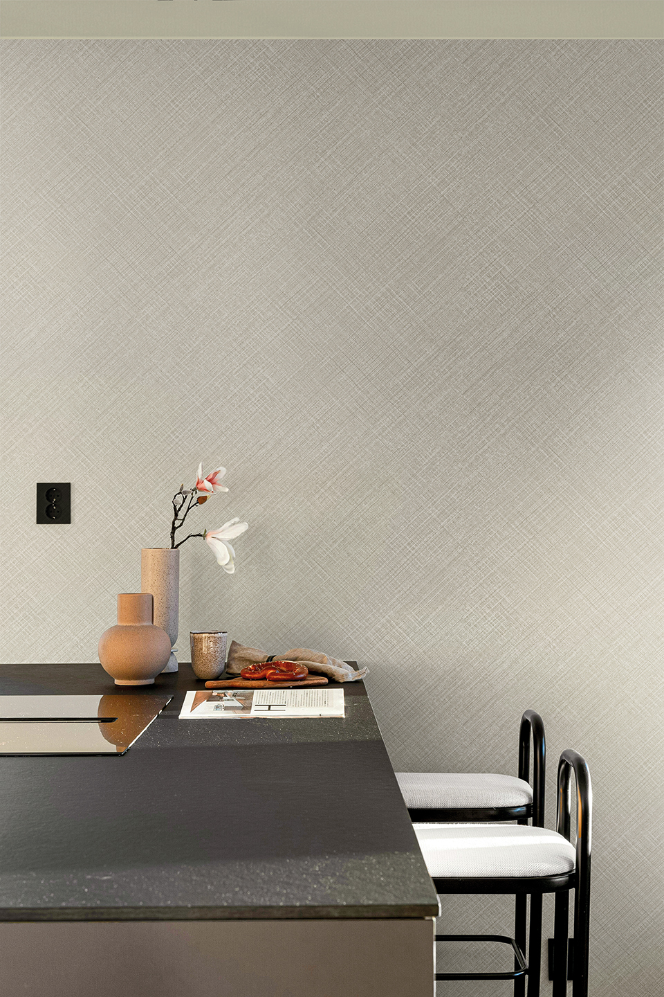 JV 604 Penelope è un omaggio alla materia e al gesto artigianale, ispirato a trame tessili naturali come lino, corda, macramé e ricami. Le superfici evocano un immaginario poetico e tattile, dove intrecci e texture prendono forma attraverso effetti tridimensionali e una resa materica profonda. Come nel telaio di Penelope, ogni disegno nasce da un intreccio armonico: di materia e colore, di tecnica e ispirazione. Le texture naturali dialogano con un pronunciato effetto tessile, ottenuto grazie alla stampa su supporto tecnico in vinilico su TNT, che conferisce profondità, tridimensionalità e un’elevata resa materica.