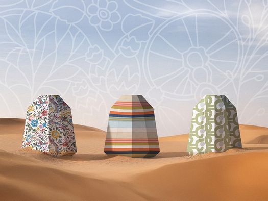 La sensibilità naturale tipica del linguaggio Armani emerge in ispirazioni tratte da foglie e pietre, accanto a nuove varianti colore di disegni iconici come Aida e Iolanta. Non manca il richiamo al mondo moda della maison, con superfici che evocano plissé di seta, intrecci e trame tessili di alta sartorialità.