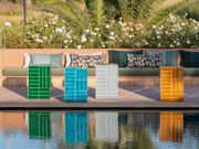 In Sardaigne il mood vintage si esprime, oltre che nelle linee di arredi e accessori, anche nel pattern a righe che definisce l’intera collezione, dalla sedia a sdraio in legno e tessuto, all’ombrellone. Le cromie, che spaziano tra l’azzurro, l’arancio mattone e il giallo senape, si combinano creando un inedito equilibrio tra contemporaneità e nostalgia.