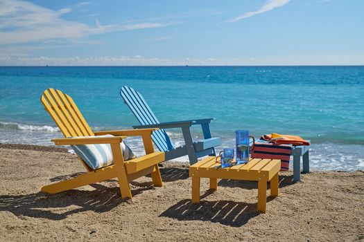Sedie sdraio e ombrellone Sardaigne, tavolini Zeda, La Redoute