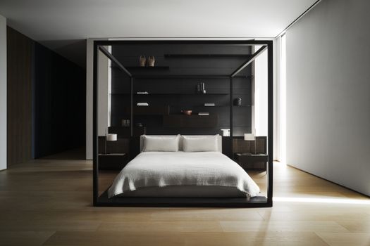 Circondano il letto i comodini Boxes di Piero Lissoni in cristallo retroverniciato, che abbinano la linearità del segno con un colore acceso e inedito carta da zucchero. Al quarto piano, riservato alla generazione più giovane, i due guardaroba scelgono composizioni Storage con ante Block in cristallo trasparente, che svelano interni in black sugi: una finitura intensa, materica e dall’impatto emozionale profondo.