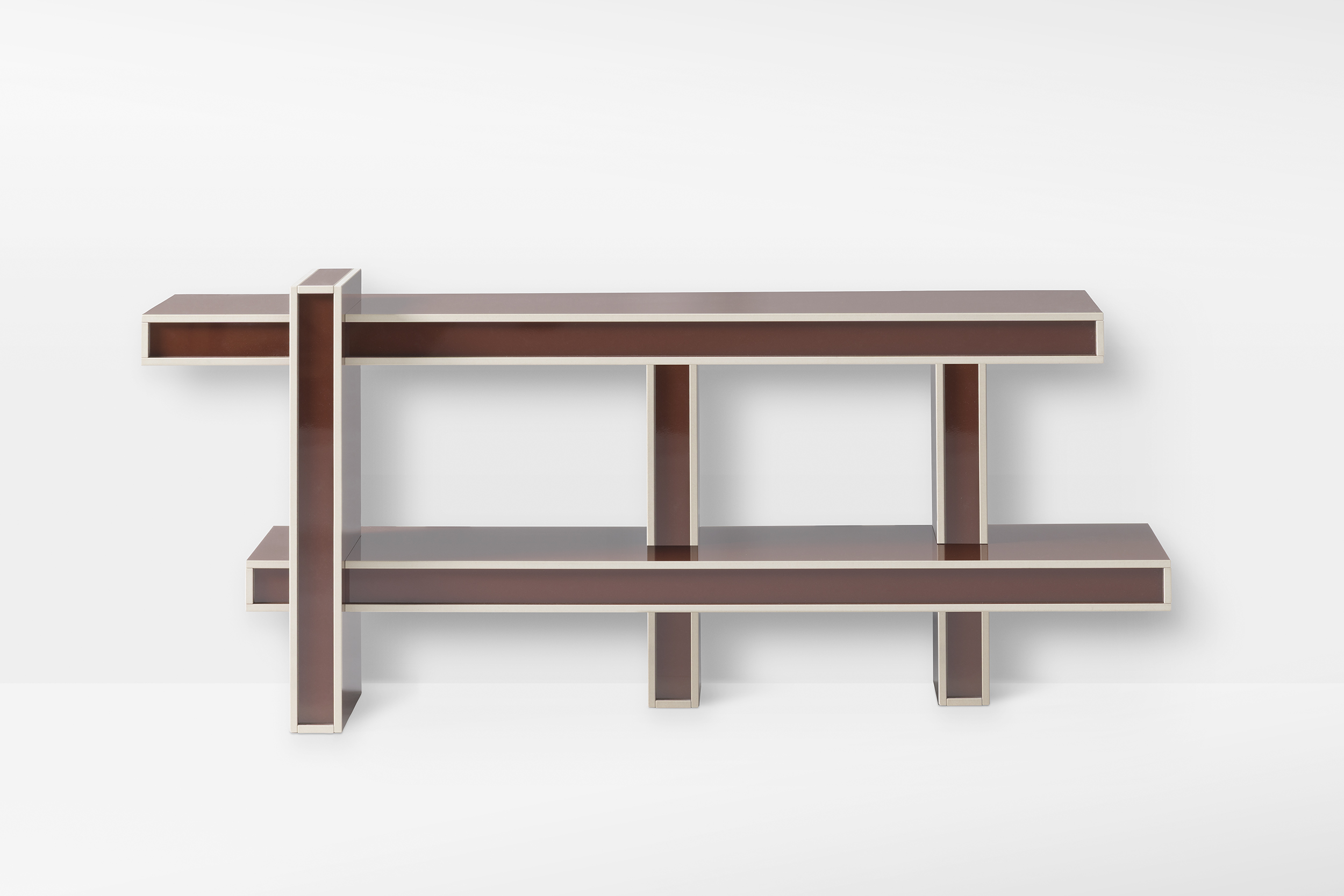 LEPID è un gioco di contrasti misurati: profili decisi, linee che proseguono e si sovrappongono, assemblaggi leggeri che costruiscono ritmo e movimento. La struttura si sviluppa attraverso un linguaggio fatto di sovrapposizioni e vuoti attentamente calibrati, dove ogni elemento sembra trovare naturalmente il proprio posto nello spazio.