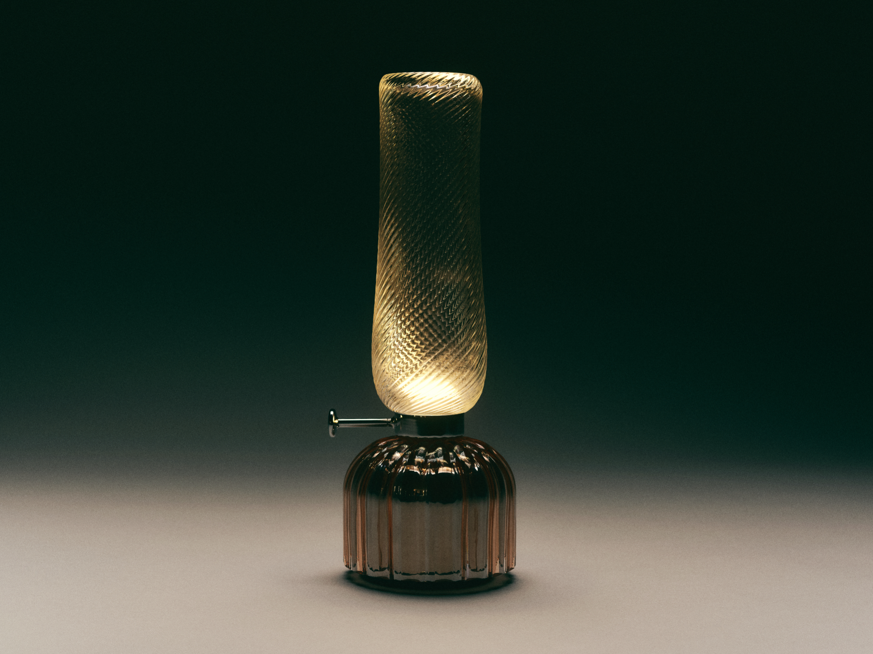 La lampada da tavolo Aurora completa il trittico di creazioni firmate da NICHETTO®, rileggendo la tradizione dell’illuminazione a olio in chiave contemporanea grazie a una tecnologia perfettamente integrata e invisibile e a un corpo in vetro rigato che restituisce vibrazioni ottiche raffinate.