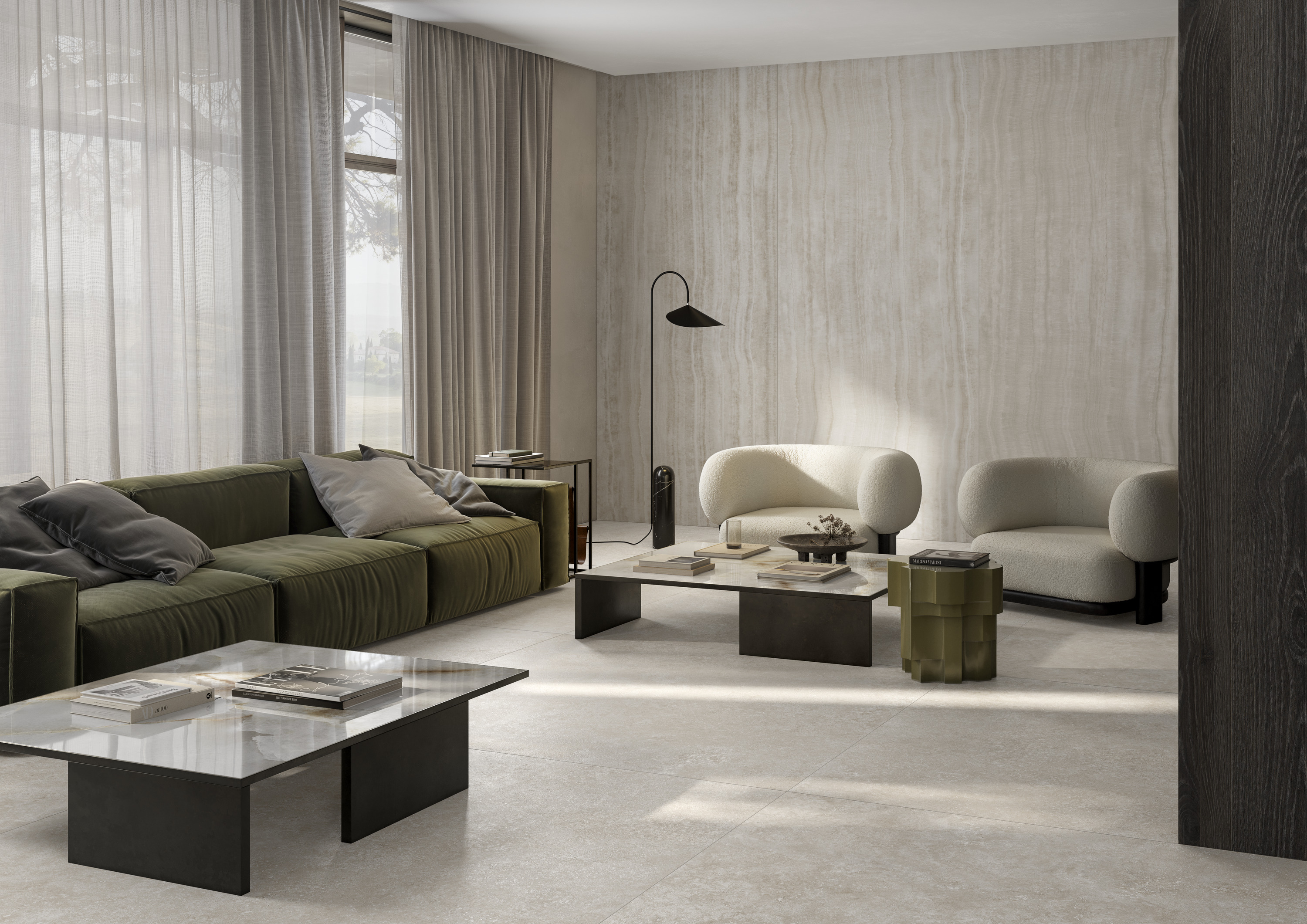 Ispirata a 19 tipologie marmoree rare e iconiche, la collezione propone piastrelle per pavimenti e rivestimenti in diverse dimensioni che spaziano dalle grandi lastre ai formati tradizionali, con mosaici e decori che valorizzano la profondità delle venature.