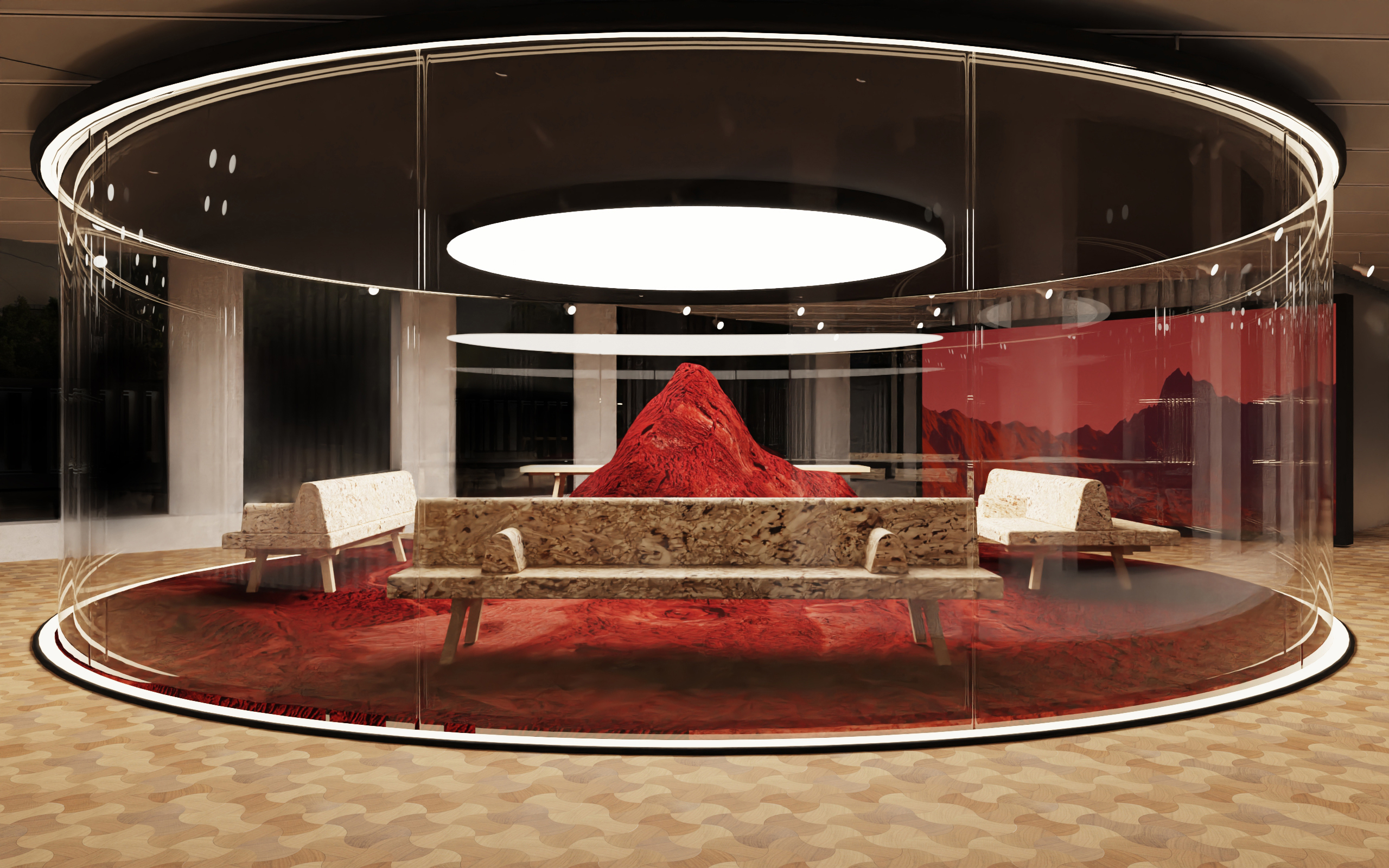 UniFor presenta due nuove collezioni firmate Herzog & de Meuron nell'installazione Non Places a cura di Studio Klass. In Viale Pasubio 15, l'intervento non ricrea un ambiente riconoscibile, ma introduce un assetto astratto: uno spazio non assegnato, capace di accogliere il prodotto senza determinarlo. Un cilindro in vetro curvato disegna un perimetro definito. Una soglia trasparente che separa e allo stesso tempo espone.