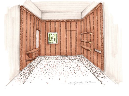 Varcando la soglia dello showroom, il visitatore si troverà circondato da un elaborato lampasso di seta, in cui un fitto intreccio di simboli percorre la storia e le battaglie del Maestro. Intriso di significati personali e denunce politiche, il tessuto è una vera e propria "traduzione" linguistica che ha interpretato in maniera nuova un motivo identitario del grande e coraggioso artista.