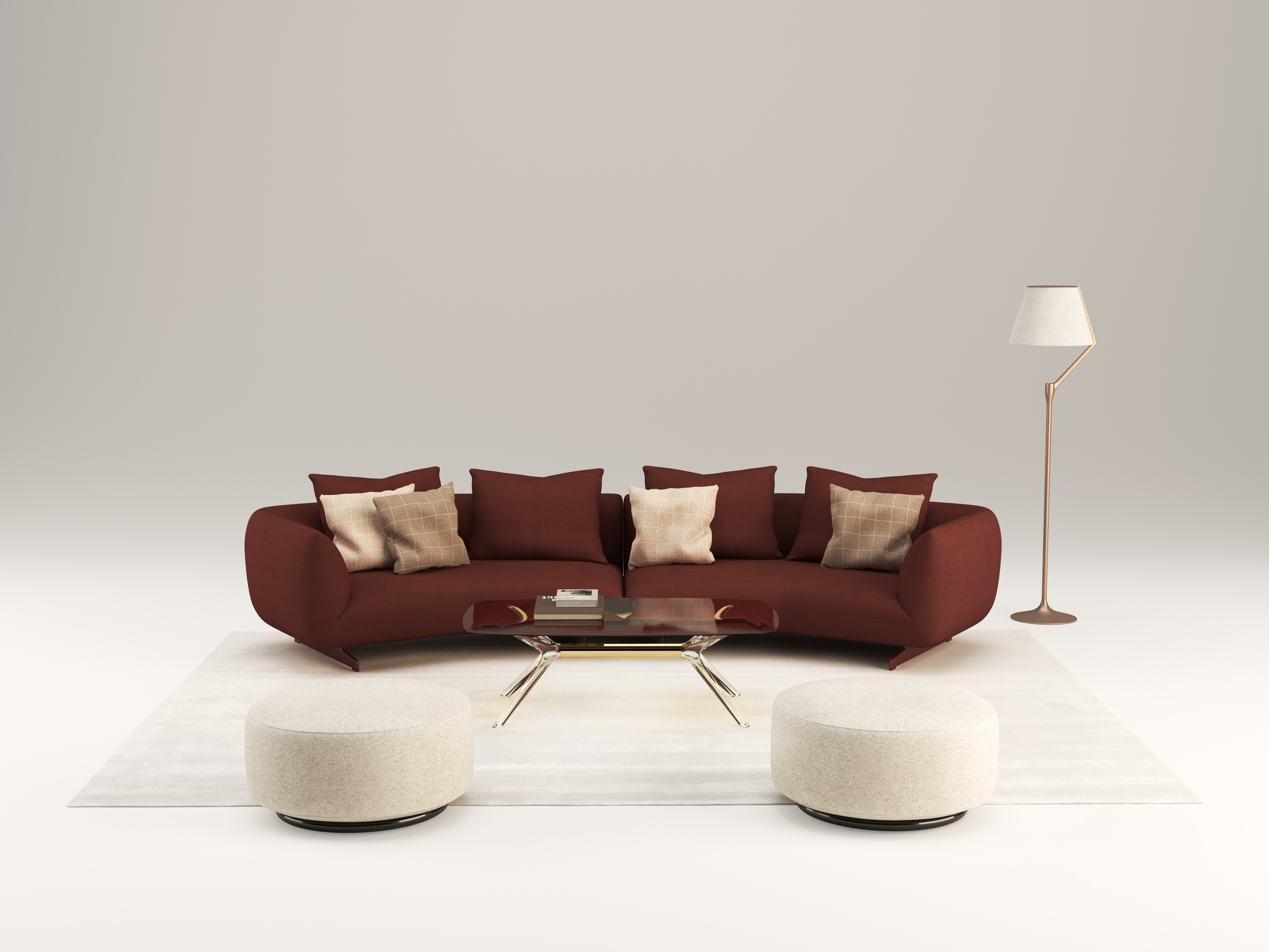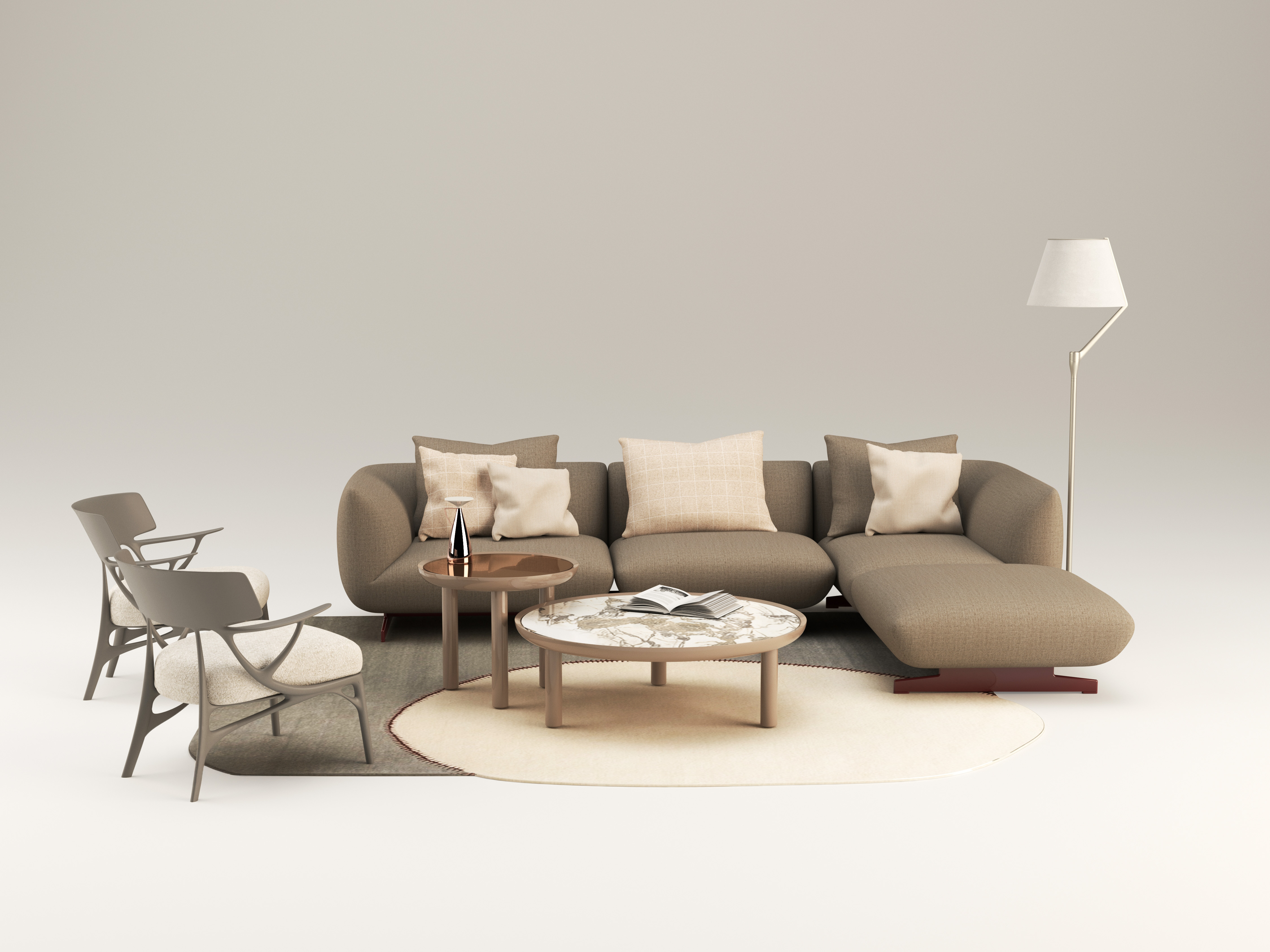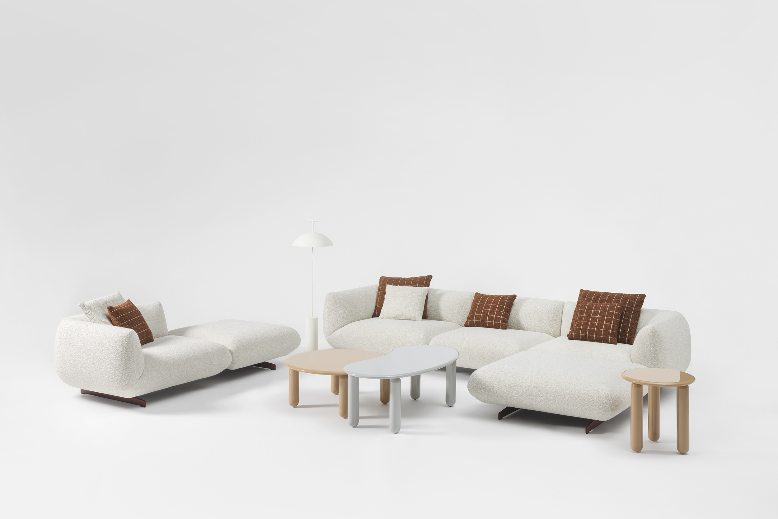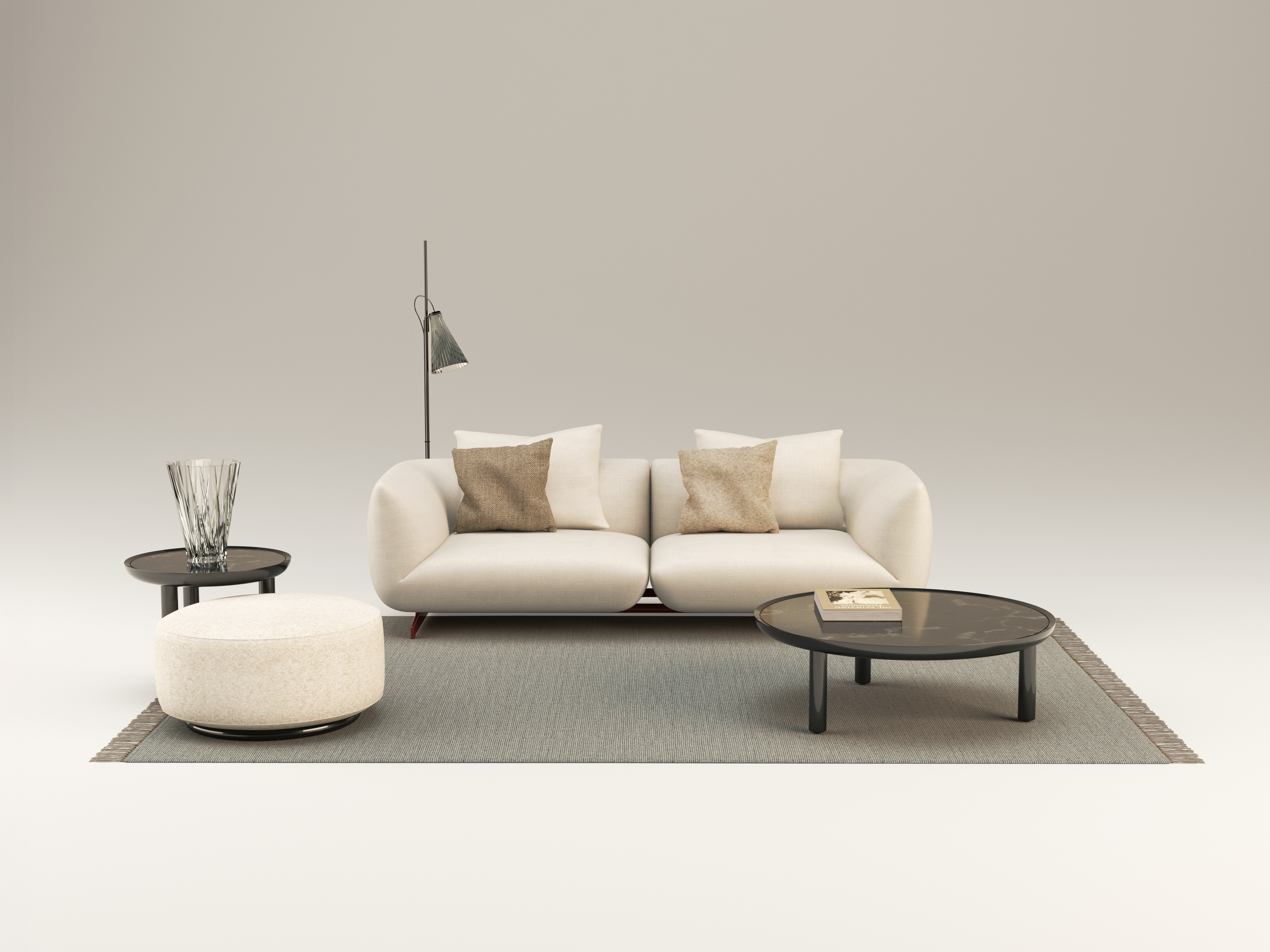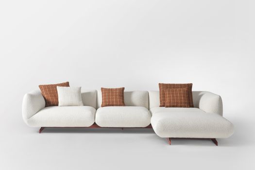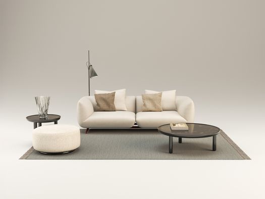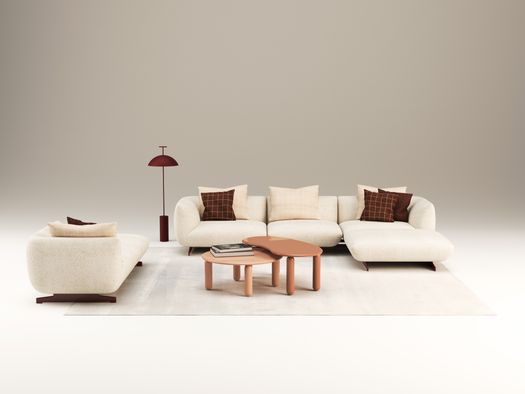 Il progetto nasce dalla volontà di creare un imbottito capace di interpretare una nuova idea di comfort: informale, generoso, fluido. Le forme sono morbide e avvolgenti, il disegno volutamente essenziale. I dettagli sono precisi e puliti, mentre il piede diventa un elemento decorativo che alleggerisce visivamente la struttura. La palette cromatica gioca su armonie tonali e contrasti tessili.