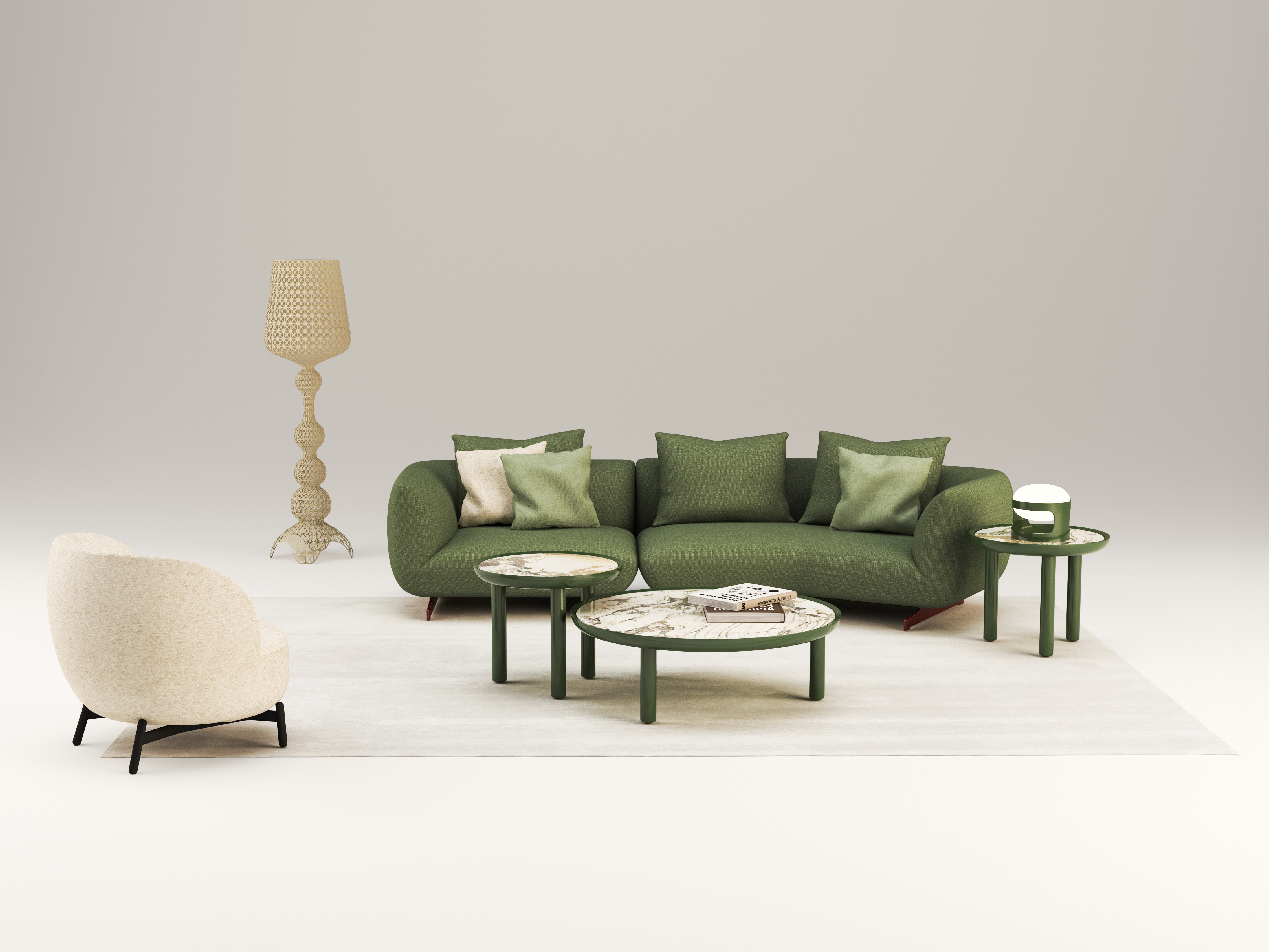 La collezione comprende sistemi modulari, sedute avvolgenti, oltre a poltrone e chaise longue, pensate per rispondere alle diverse esigenze dell’abitare contemporaneo e per adattarsi sia agli spazi residenziali sia ai contesti contract e hospitality. Ogni progetto mantiene riconoscibili l’identità del brand, la ricerca progettuale e quella creatività distintiva che caratterizza il linguaggio Kartell.