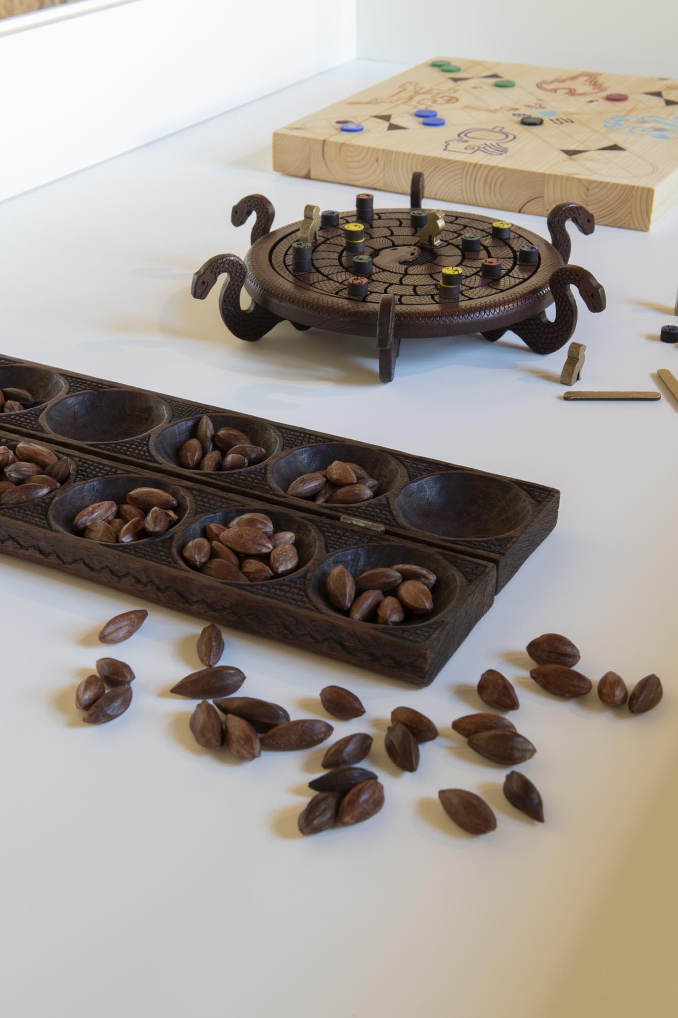 Il percorso espositivo ripercorre l’evoluzione del gioco da tavolo dalle sue origini fino alle sperimentazioni più recenti. Si parte da una selezione di trenta giochi antichi provenienti da diverse culture, dal Gioco reale di Ur al Go, dagli Scacchi al Domino, che testimoniano la dimensione universale del gioco.