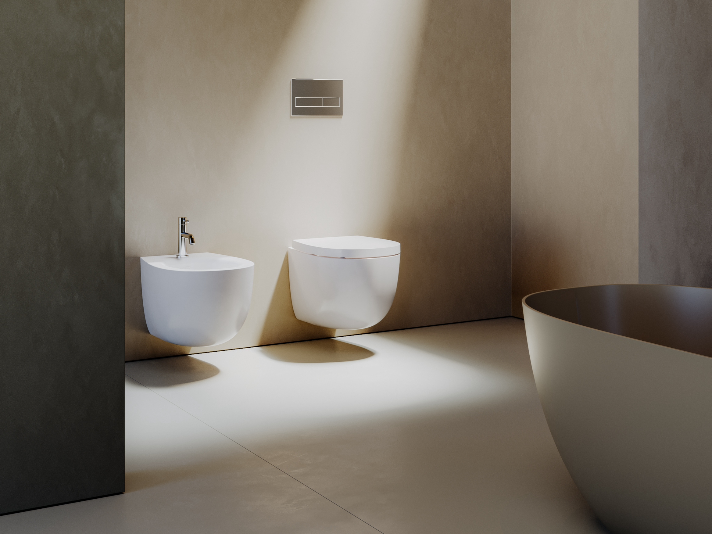 La collezione integra il sistema brevettato PURE VORTEX®, rendendo la performance parte integrante del progetto. Lumina introduce nel bidet una nuova soluzione tecnica: il troppo pieno completamente incorporato nel disegno ceramico e reso invisibile. Un accorgimento che elimina interruzioni visive, preserva la purezza del volume e supera la tradizionale distinzione tra componente tecnica e gesto progettuale.