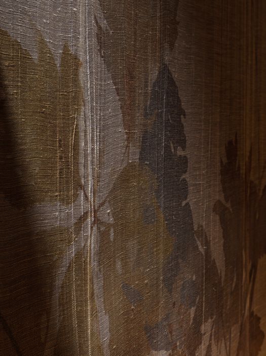 La materia si esprime al meglio in condizioni di luce filtrata o radente, restituendo vibrazione e profondità percettiva. La palette cromatica si costruisce attorno a tonalità polverose e attenuate, pensate come base percettiva. I colori non generano contrasti, ma lasciano a luce e trama il compito di definirne la profondità, contribuendo a un’atmosfera soffusa e pacata. Ne emerge un’idea di lusso rilassato, lontano dall’ostentazione e dalla perfezione formale.