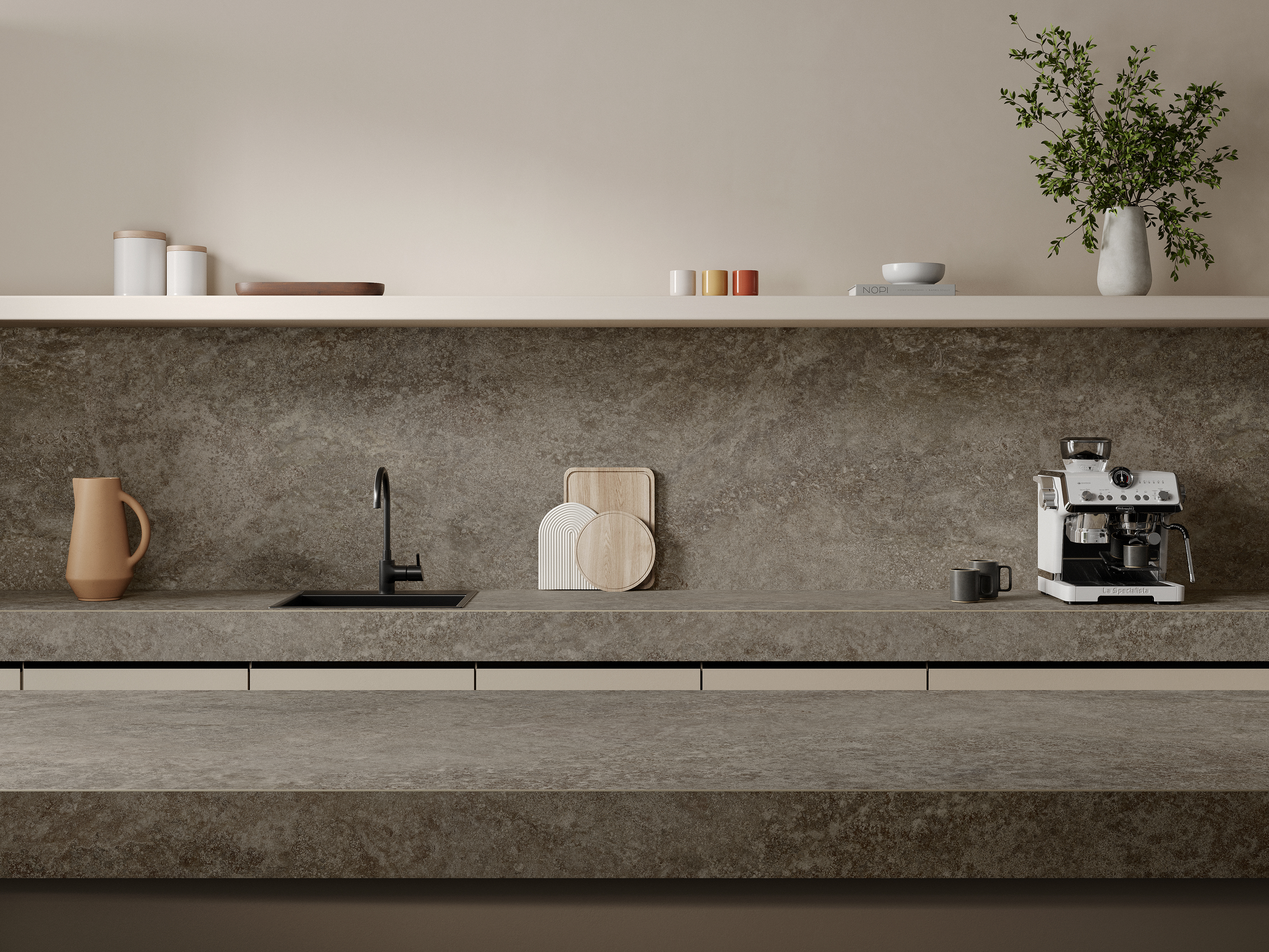 Neolith Toscano prende ispirazione dalla nobiltà della pietra italiana e la declina in una palette contemporanea di tonalità, legate alla terra e alla gamma dei marroni. Caldo, avvolgente e ricco di sfumature, richiama i paesaggi mediterranei e la vitalità della materia, conferendo carattere agli spazi senza rinunciare all’equilibrio. Nello spessore di 6 mm è ideale per progetti che ricercano un’atmosfera accogliente attraverso texture e colore; nella versione 12 mm trasferisce la stessa identità ai piani cucina e bagno. La finitura Riverwashed esalta una texture delicatamente erosa che rafforza l’autenticità del design ispirato alla pietra.
