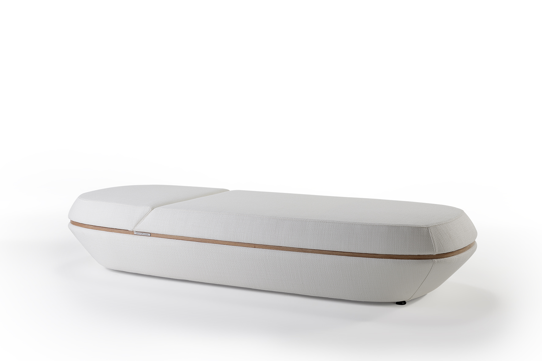 Un segno orizzontale attraversa l’oggetto e ne diventa cifra stilistica: un elemento che spezza il volume, alleggerisce la percezione dell’imbottito e integra con discrezione le funzioni tecniche. Come per gli altri elementi della collezione Orizzonte, estetica e funzione si fondono in un linguaggio essenziale.