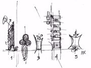 Una grande installazione ambientale che raccoglie disegni, progetti e oggetti