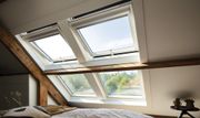Quattro finestre da tetto FAKRO, in combinazione orizzontale e verticale, trasformano un sottotetto in Olanda in una camera accogliente e luminosa