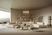 Forme monolitiche e leggere si articolano nel sistema di sedute Loungescape, personalizzabile con i tessuti e le pelli della collezione Flexform