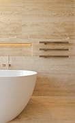 | | | | Il Solid Surface assicura versatilità, igiene e sostenibilità per ogni elemento del bagno con texture vellutate e nuances ispirate alla natura | |
