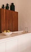 | | | | L’incontro tra linee pure e spessori sottili conferisce un senso di armonia contemporanea, in cui la pietra assume la leggerezza di un foglio | |