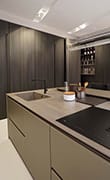 Superfici che dialogano tra loro, combinando la luminosità profonda del vetro e la matericità soft-touch degli opachi