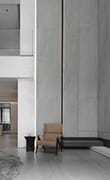 Le superfici effetto pietra Fiandre, calde e vellutate al tatto, rivestono pareti e pavimenti dell’abitazione progettata dallo studio Benmo Design