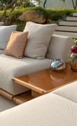 Rotondi, quadrati, rettangolari o ovali, con basi singole o doppie, in metallo, marmo o pietra lavica: i tavoli Noon di Ethimo uniscono design essenziale e libertà compositiva per la convivialità all'aperto