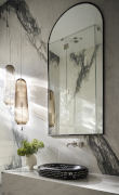 Dal marmo al legno, fino alla resina: vero fulcro del progetto firmato Davide Vercelli, le maniglie inedite ridefiniscono l'estetica del rubinetto