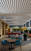 La pergola bioclimatica Kedry Prime definisce il Rooftop Restaurant e Bar all’ottavo piano affacciato sulle Dolomiti