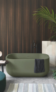 Le palette Acque e Terre si estendono alle vasche freestanding, donando continuità materica e cromatica nel bagno contemporaneo