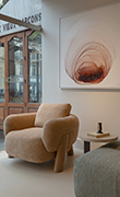 Sete grezze filate e tessute a mano, velluti marezzati e tessuti ignifughi ricamati danno forma a una collezione che intreccia ricerca materica e cultura del progetto, presentata a Paris Déco Off
