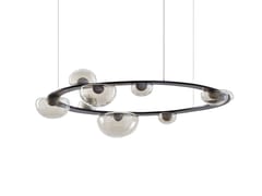 Lampada a sospensione a LED in pelle e cristallo soffiato