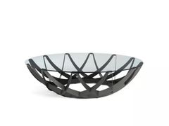 Tavolino rotondo in alluminio e vetro da salotto