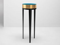 Tavolino rotondo alto in legno e ottone con vassoio