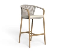 Sgabello alto da giardino in teak e corda nautica