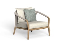 Poltrona da giardino con braccioli in teak e corda nautica